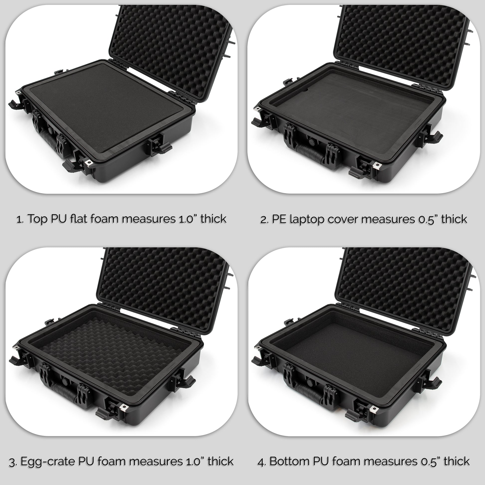 3-Layer Foam Interior with 360° Protection – Includes flat foam base, shock-absorbing egg-crate divider, snug-fit cover layer, and thick side walls for full impact resistance. Reconfigurable to fit chargers, mice, keyboards, and accessories.
