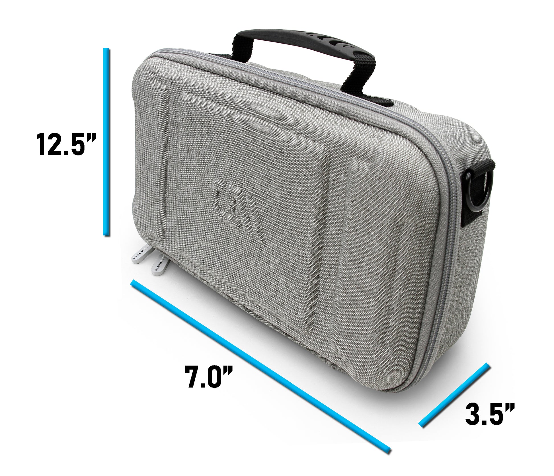 • Designed For Travel: This computer keyboard sleeve hard case measures only 12.75" x 7.5" x 3.75" and features an adjustable shoulder strap and rubber travel handle for easy portability. Interior main compartment dimensions: 11.5" x 5.5" x 2".