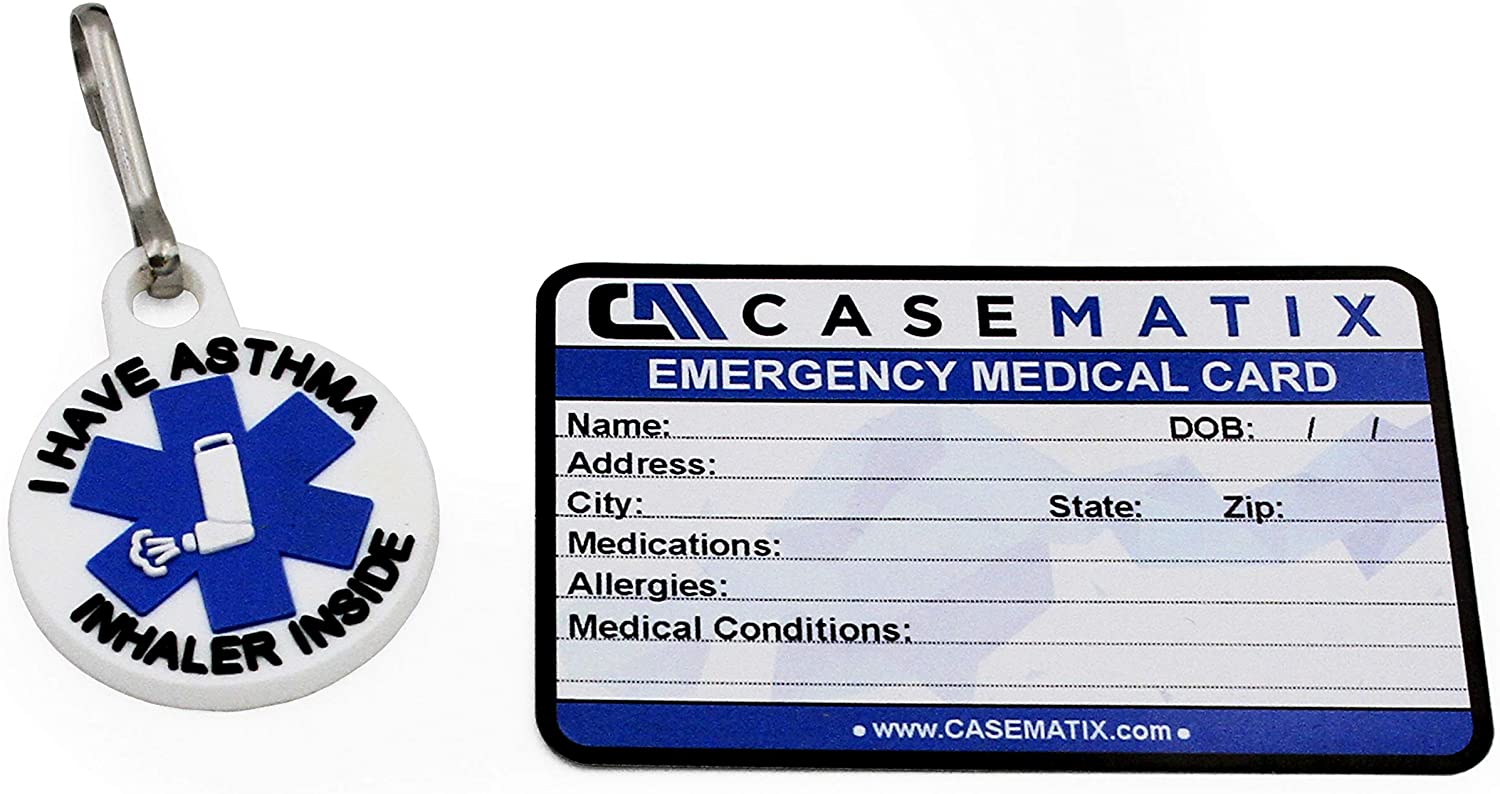 • Compatibility: 8" asthma medicine bag organizer designed for Ventolin inhalers, medication, Epipens, spacers, masks, and more - case only includes med alert tag and medical card