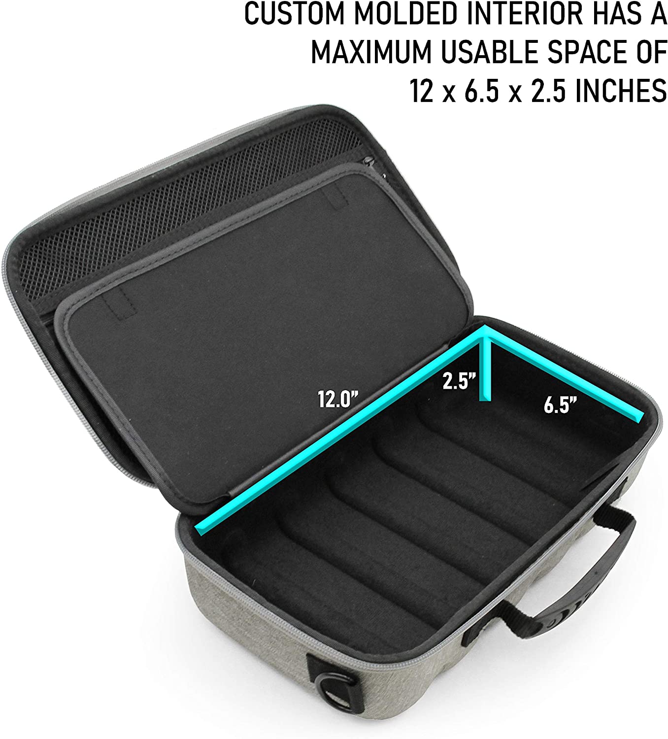 • Spacious 12" x 6.5" x 2.5" Interior: Main compartment fitting radio scanners and walkie talkies accessories up to 12" x 6.5" x 2.5" with external dimensions of 12.75" x 7.5" x 3.75", providing ample space for complete radio systems and accessories.