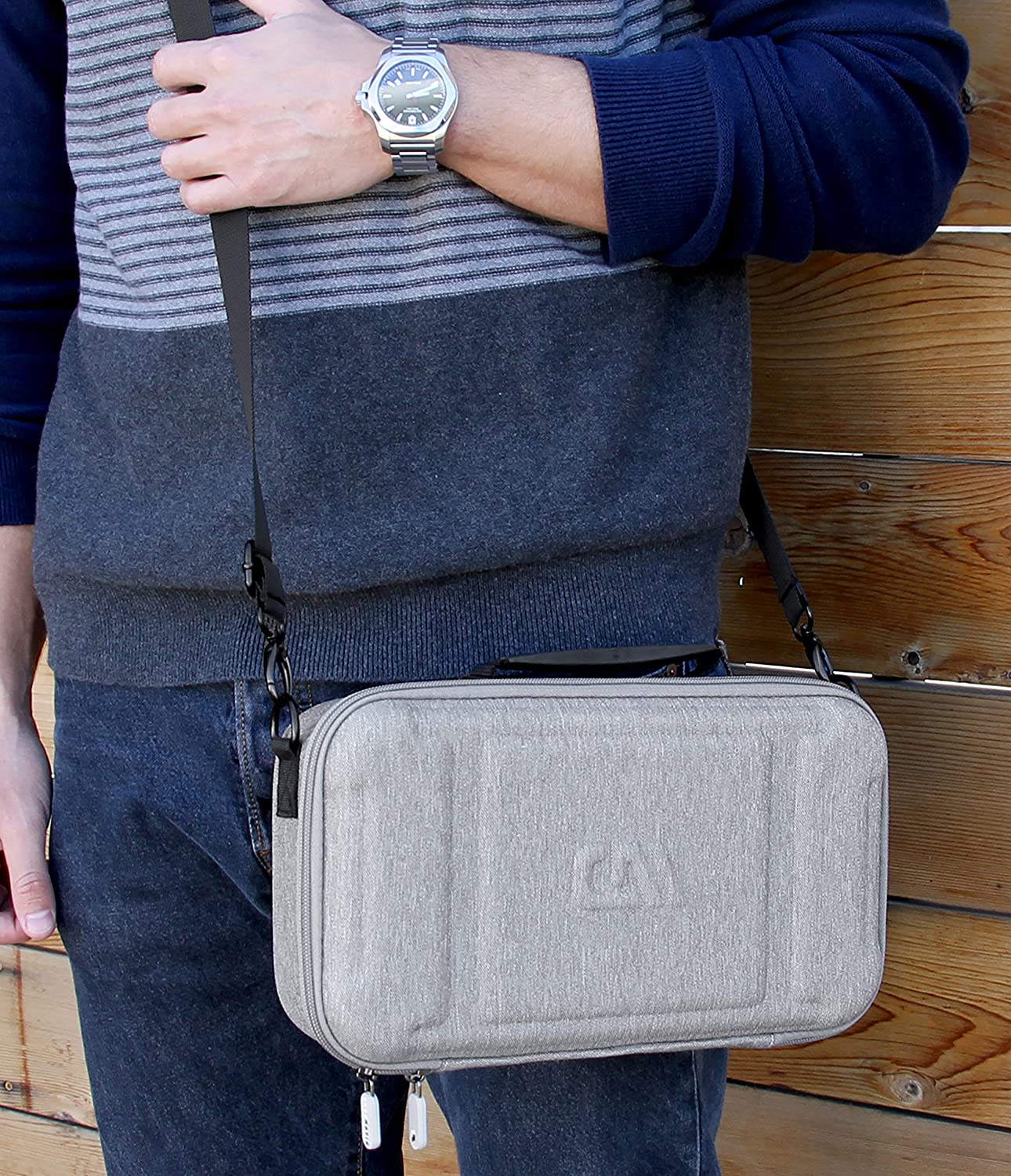 • Travel-Optimized Carrying Options: Walkie caddy radio holster with rubber carry handle and clip-on adjustable carrying strap for holding at your side or over shoulder, featuring dual rubber pull tabs and detachable adjustable shoulder strap for versatile transport convenience.