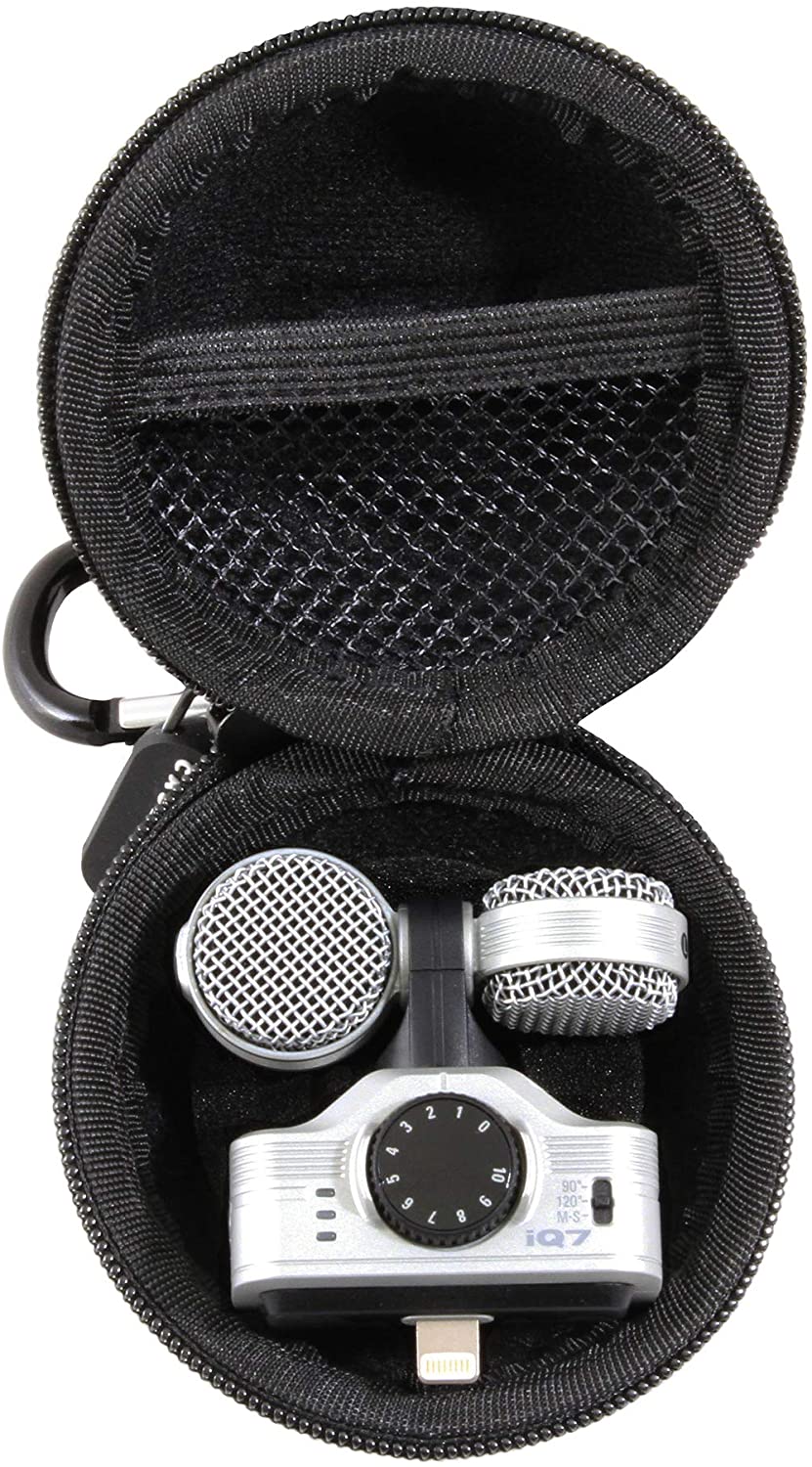 • CASEMATIX Rugged Travel Case: Fits One Zoom iQ7 Stereo Condenser Microphone or other Zoom iQ Mic (iQ6, iQ5) – made of durable carbon fiber style EVA material that provides protection from scrapes and minor bumps – INCLUDES CASE ONLY.