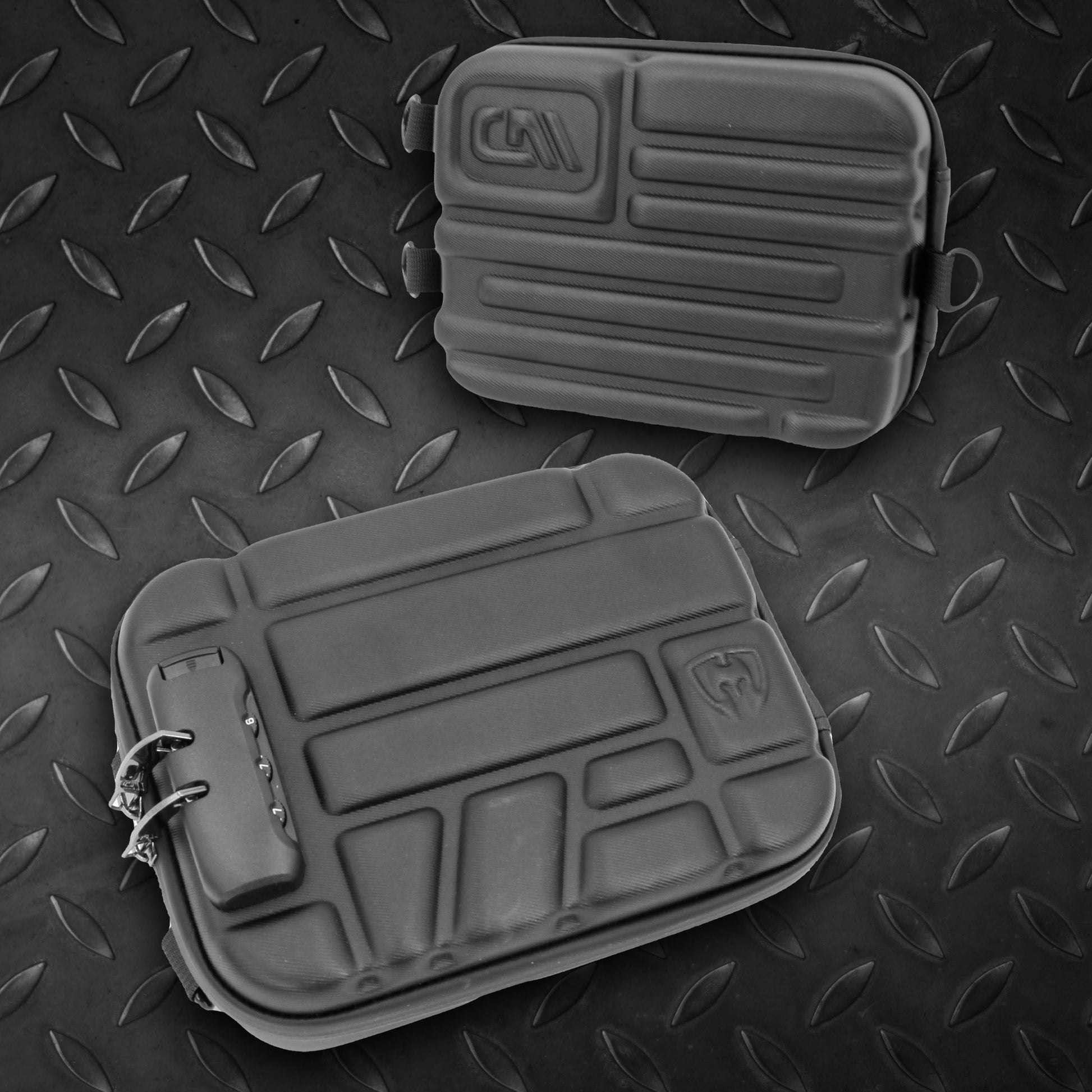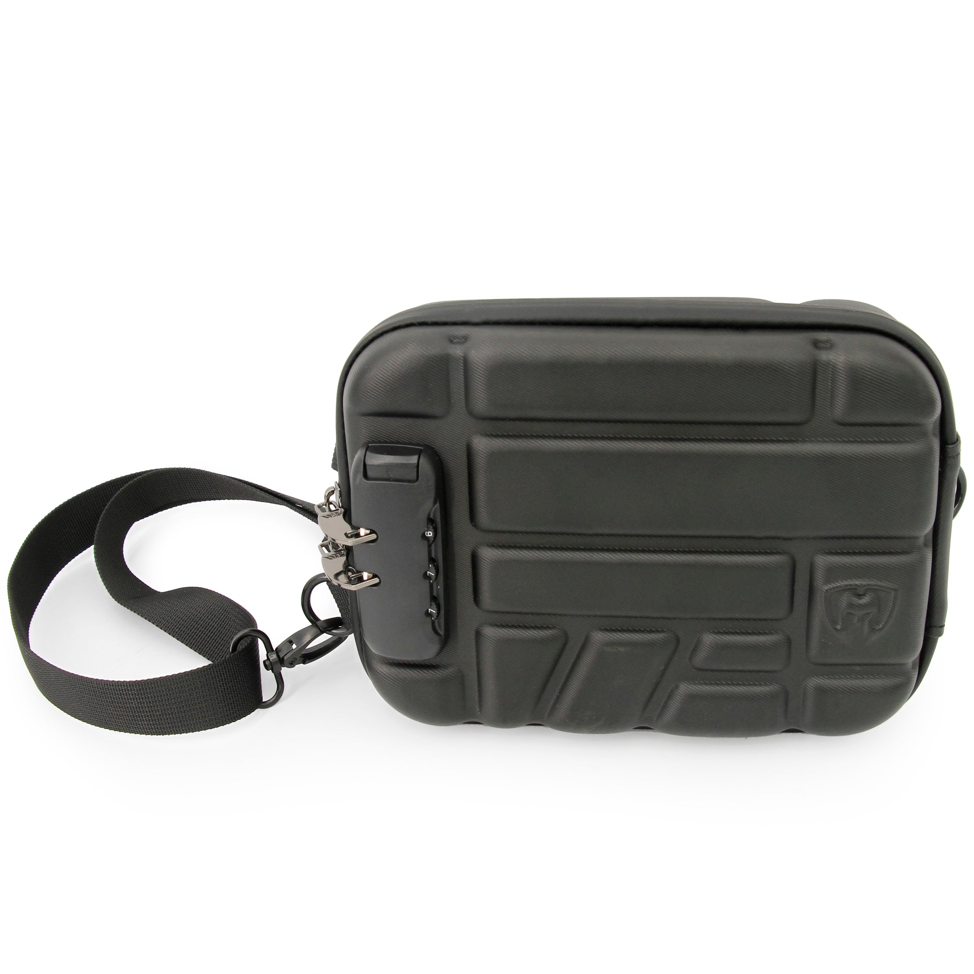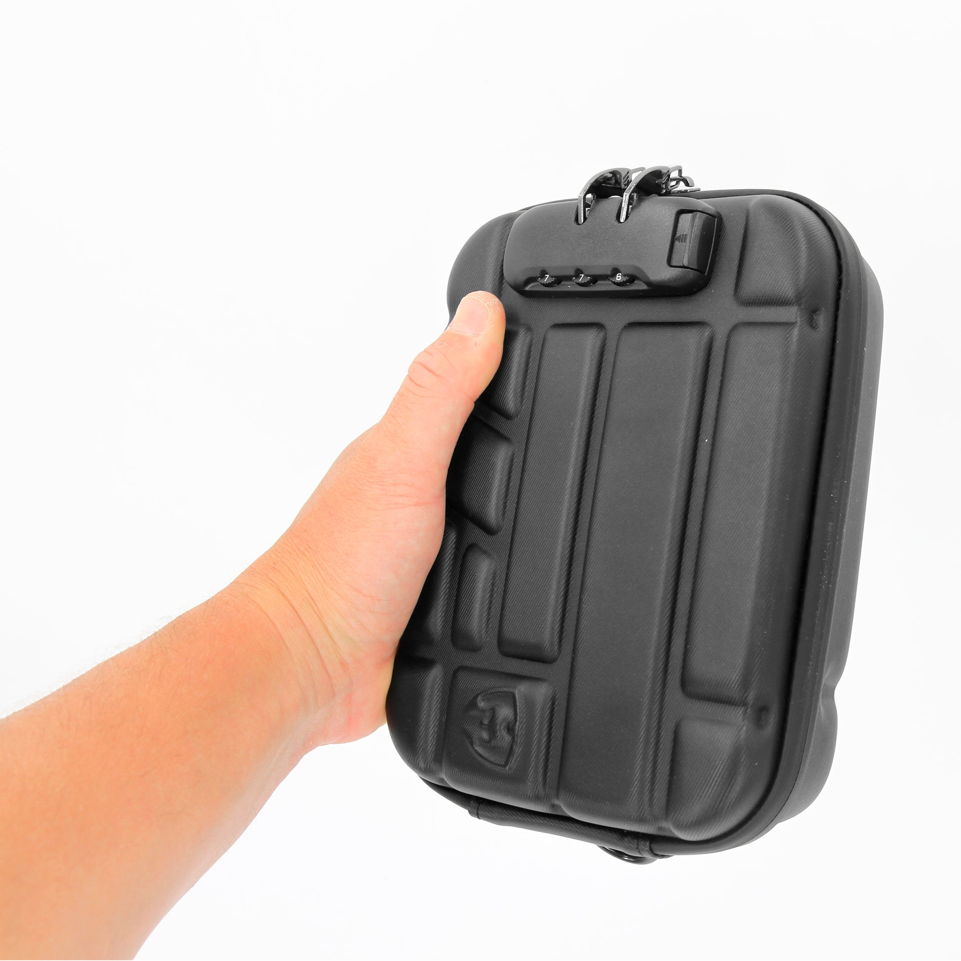 • CASEMATIX Premium EVA Locking Gun Case For Handguns: Features rugged construction with snap-in zippers, padded interior foam and built-in metal body anchor for extra security. Throw the strap over your shoulder and clip the bottom carabiner to your belt loop for secure body attachment during concealed carry transport.