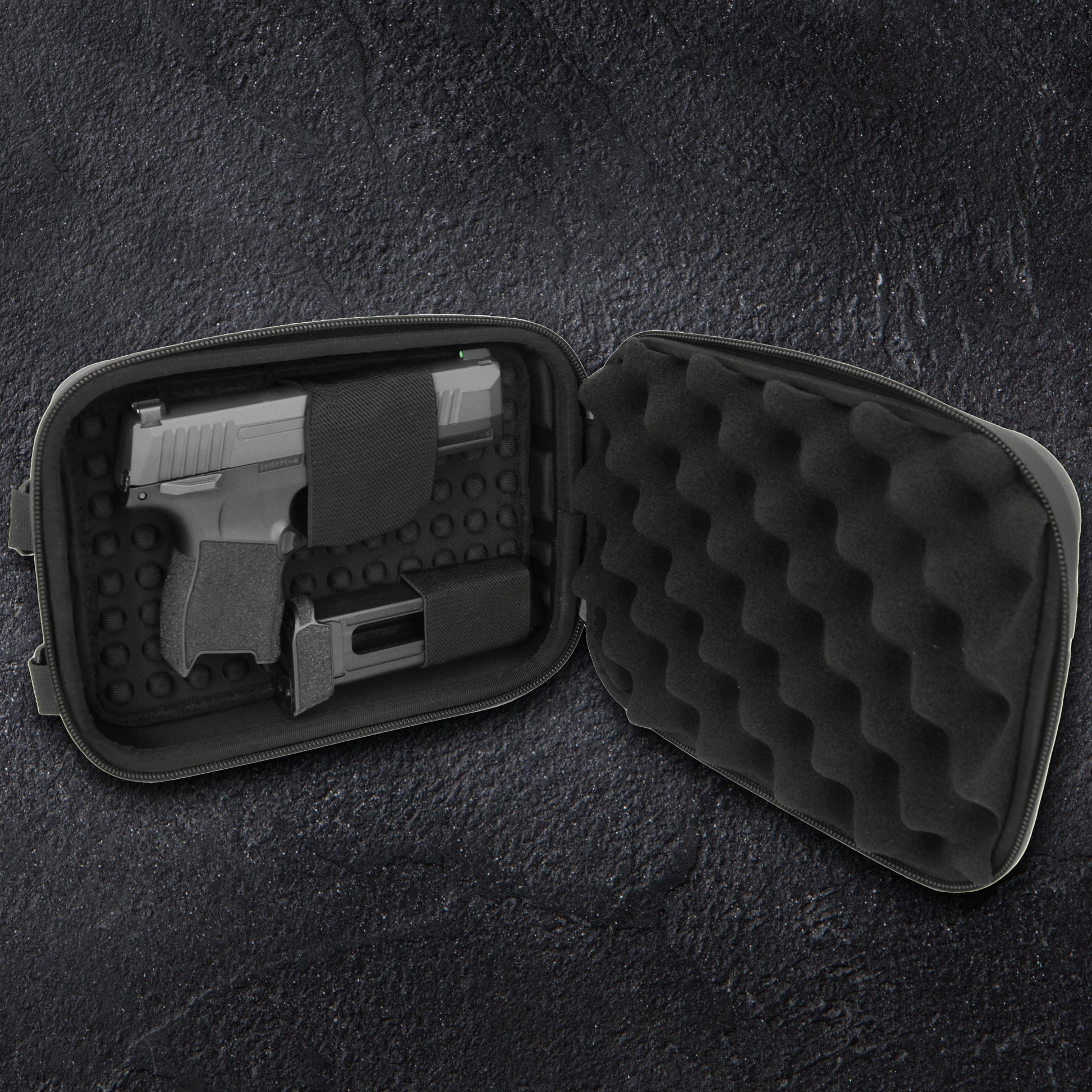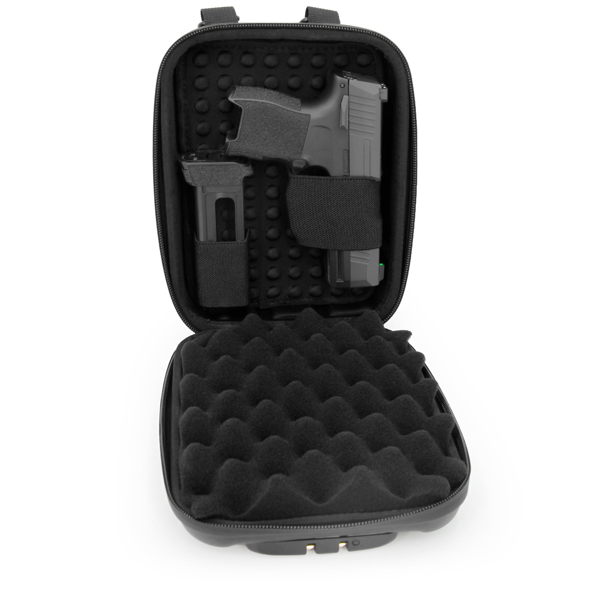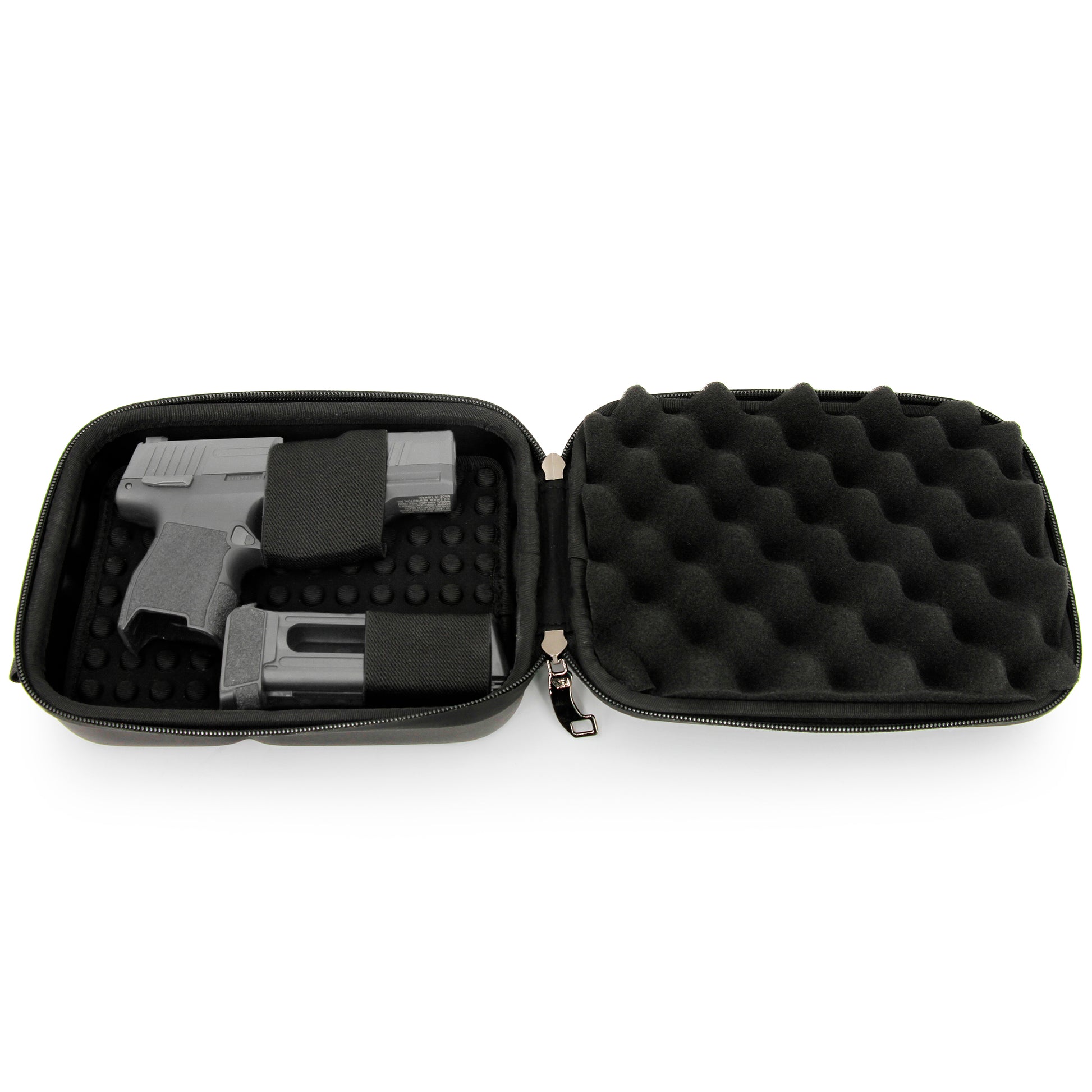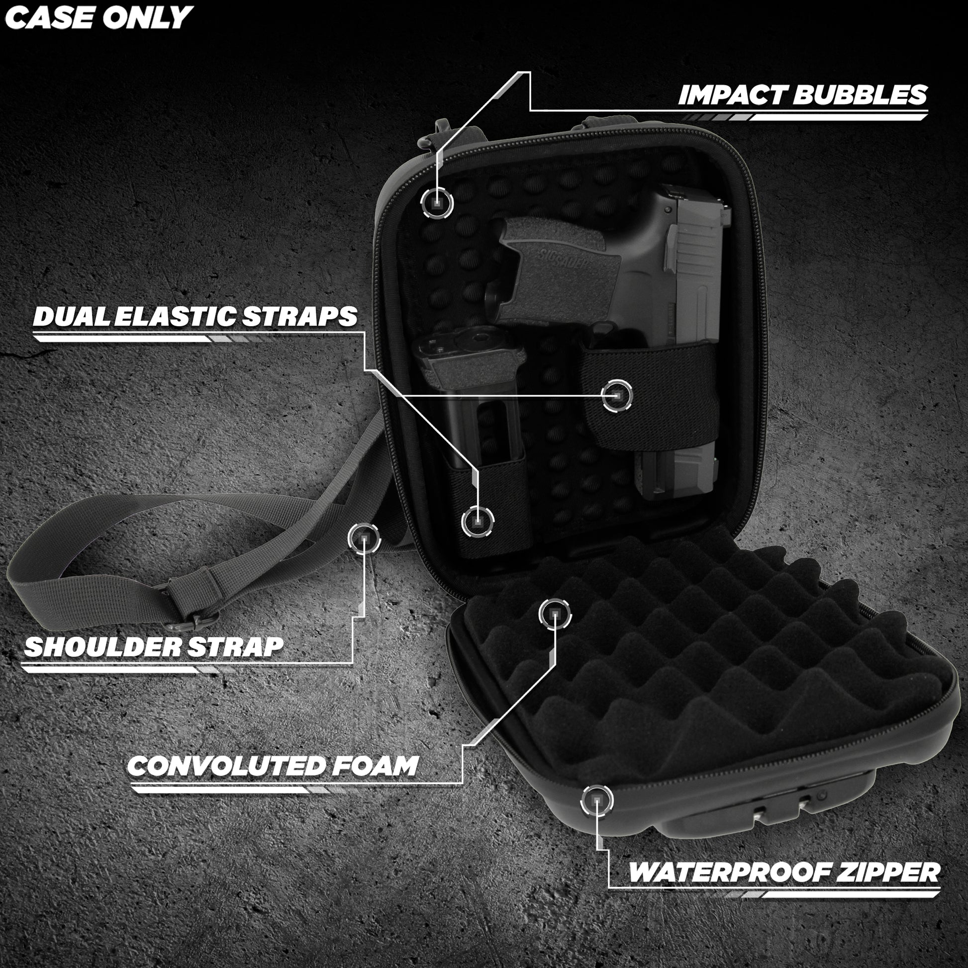 • Superior Portable Pistol Bag Protection: The durable EVA exterior measures 8.5" x 6" x 2.25" and is constructed from water-resistant rigid EVA with two heavy-duty waterproof zippers that are double-stitched along the seam. Hard shell exterior offers exceptional 360-degree impact protection for your gear compared to soft range bags.
