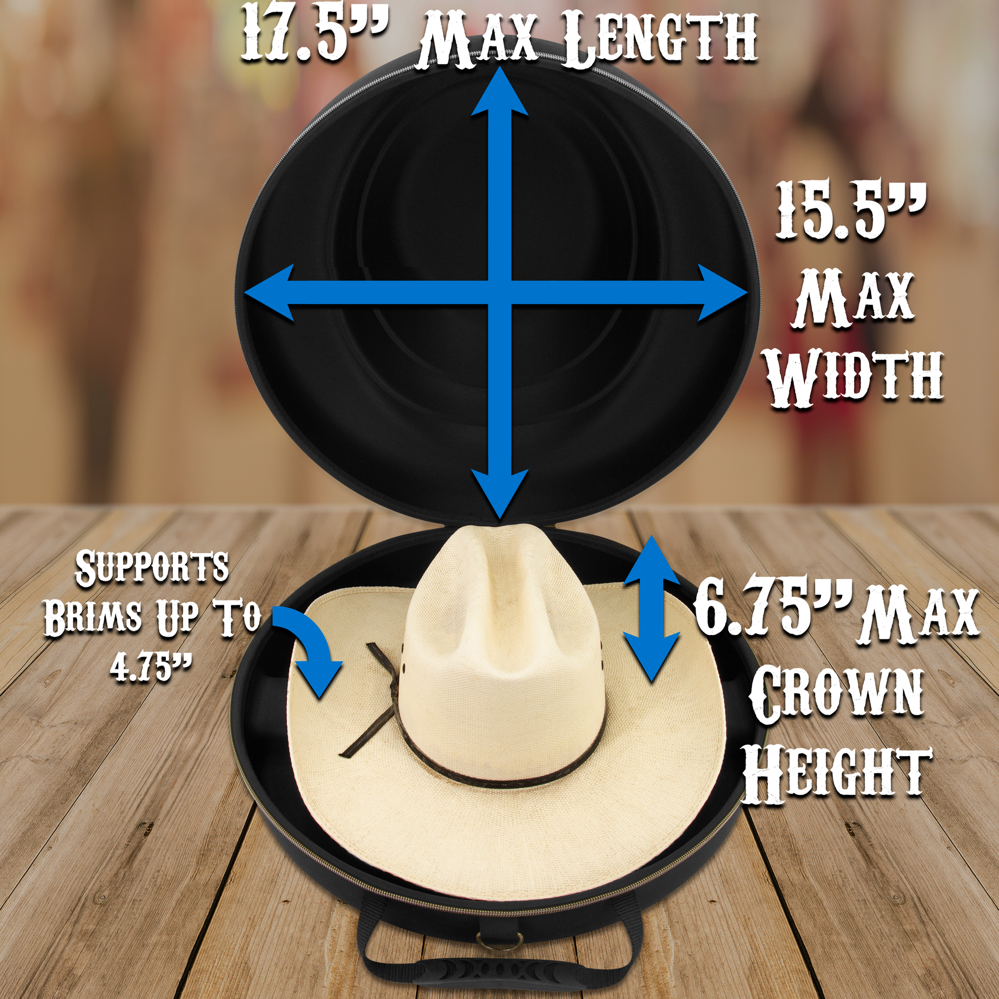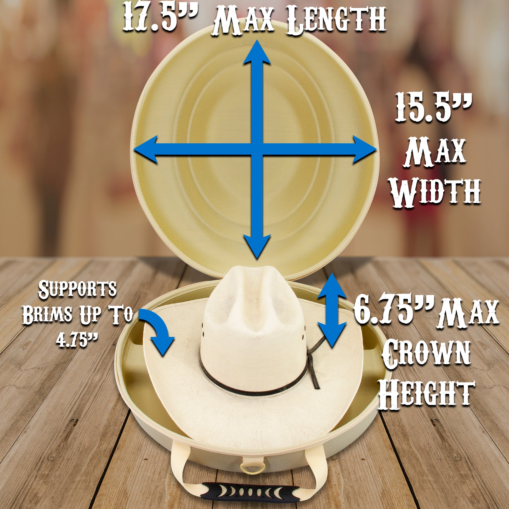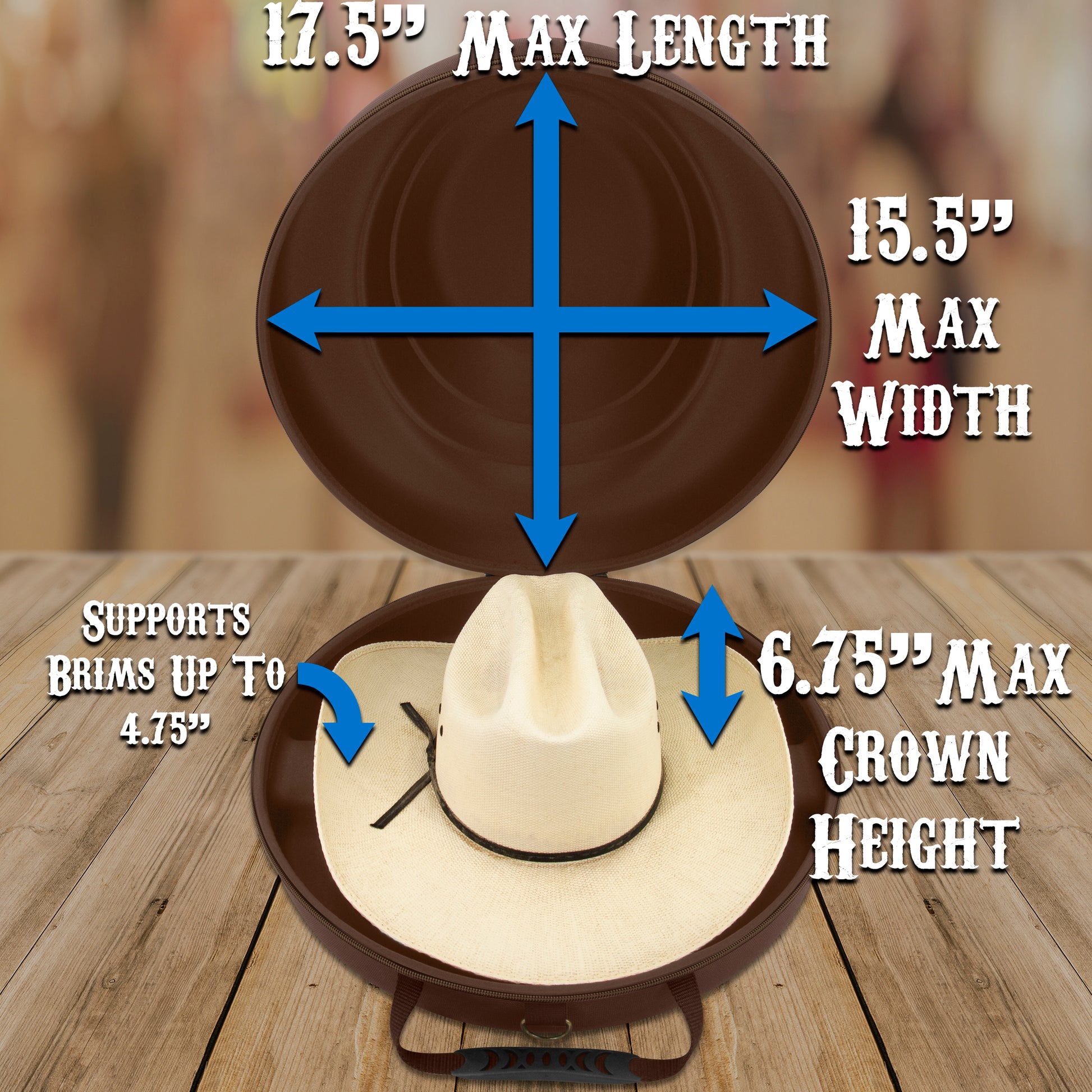 Cowboy Hat Box Cowboy Hat Storage for Brims Up To 4.75" - Hard Shell Hat Case with Adjustable Carry Strap and ID Slot - 4 Color Options