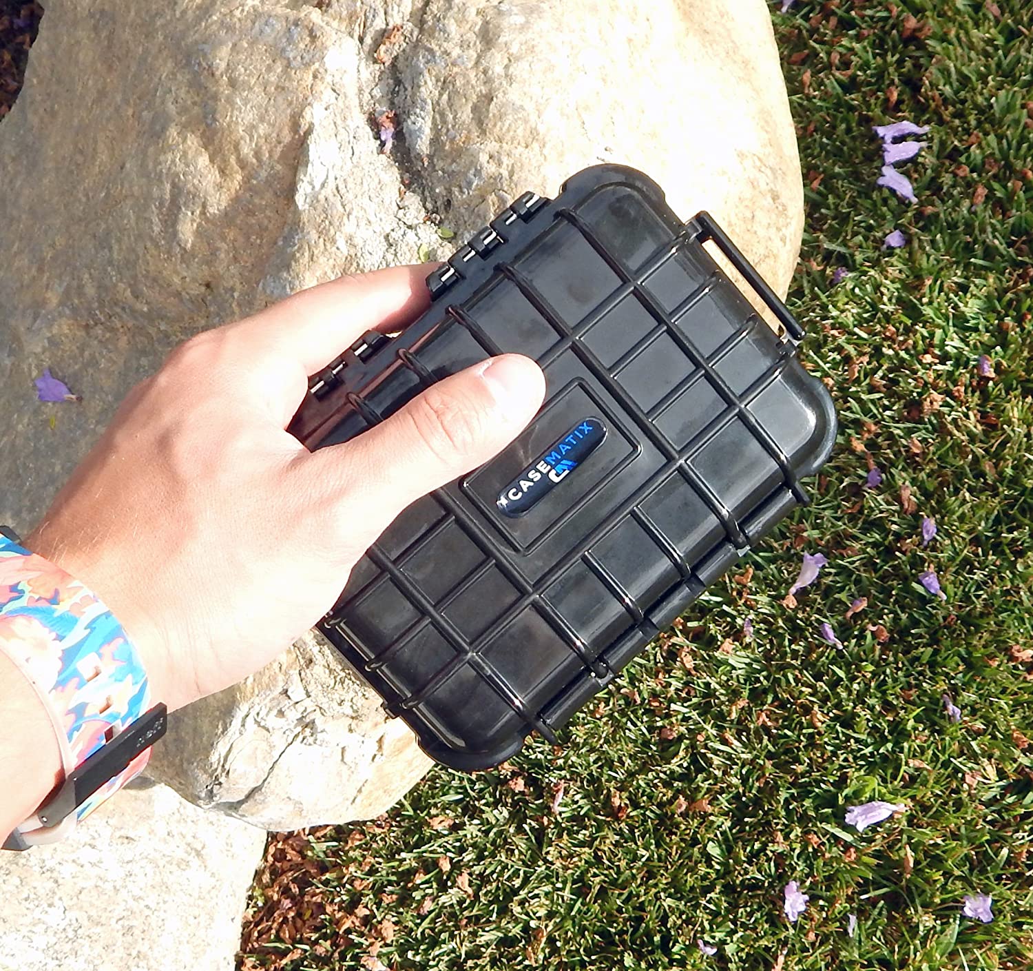 • IP67 Waterproof Construction: Dense blow-injection mold plastic exterior measuring 5.7" x 4" x 2" with heavy closing latch, waterproof O-ring lining, and air-pressurization seal for maximum environmental protection