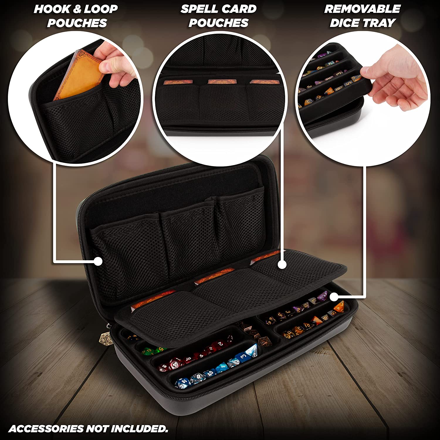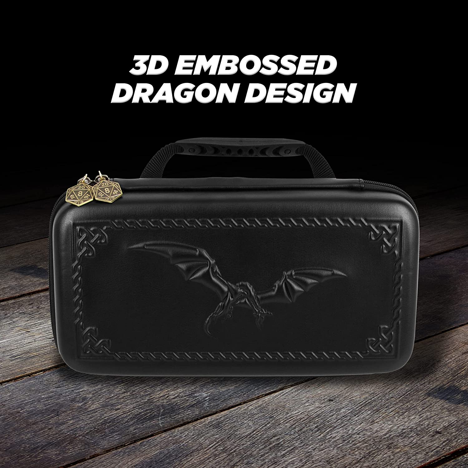 • High-Quality PU Leather Construction: Constructed with high-quality hard shell PU leather materials protecting your roleplaying dice, spell cards, pencils, condition markers, and other accessories you travel with, featuring embossed dragon design for premium tabletop gaming aesthetic.