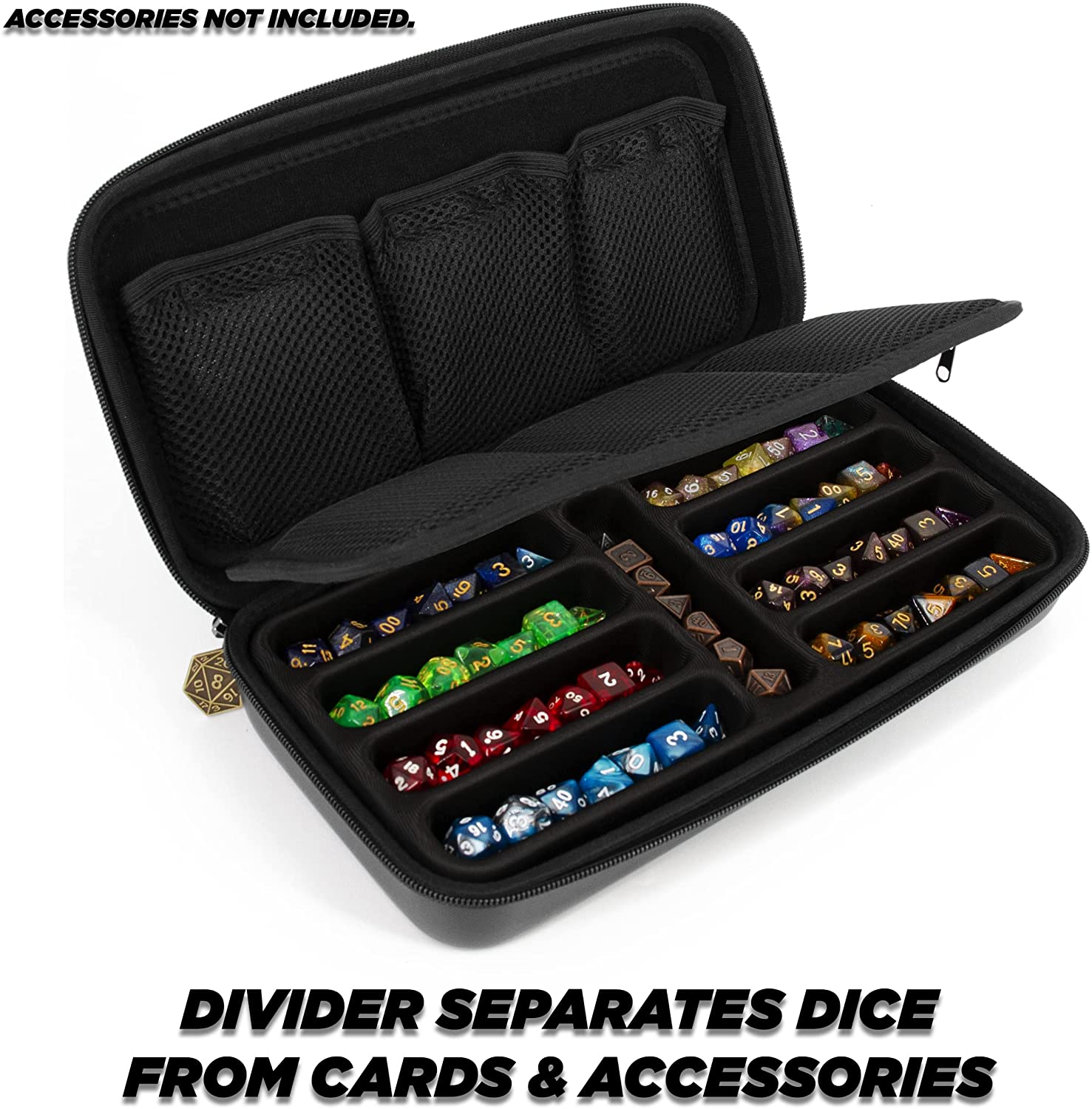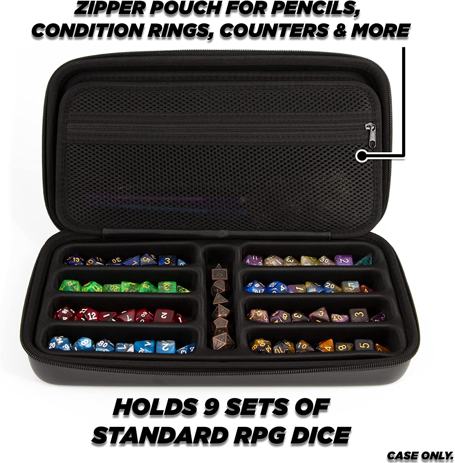 • 9-Set RPG Dice Organization: Premium dice container organizing and protecting up to 9 sets of standard RPG dice with dice slots lined with soft non-scratch fabrics keeping your dice pristine, providing optimal dice holder solution for extensive tabletop gaming collections.