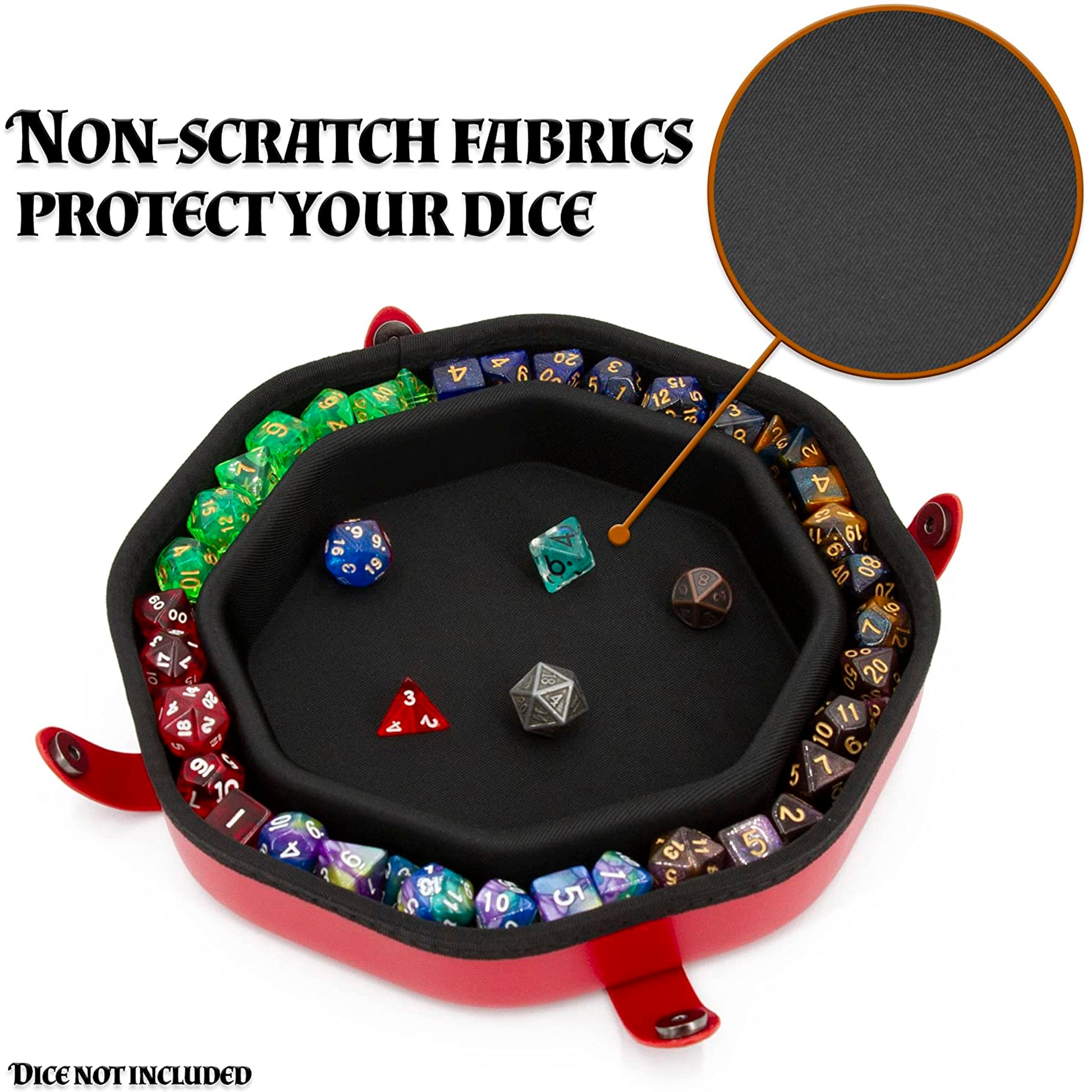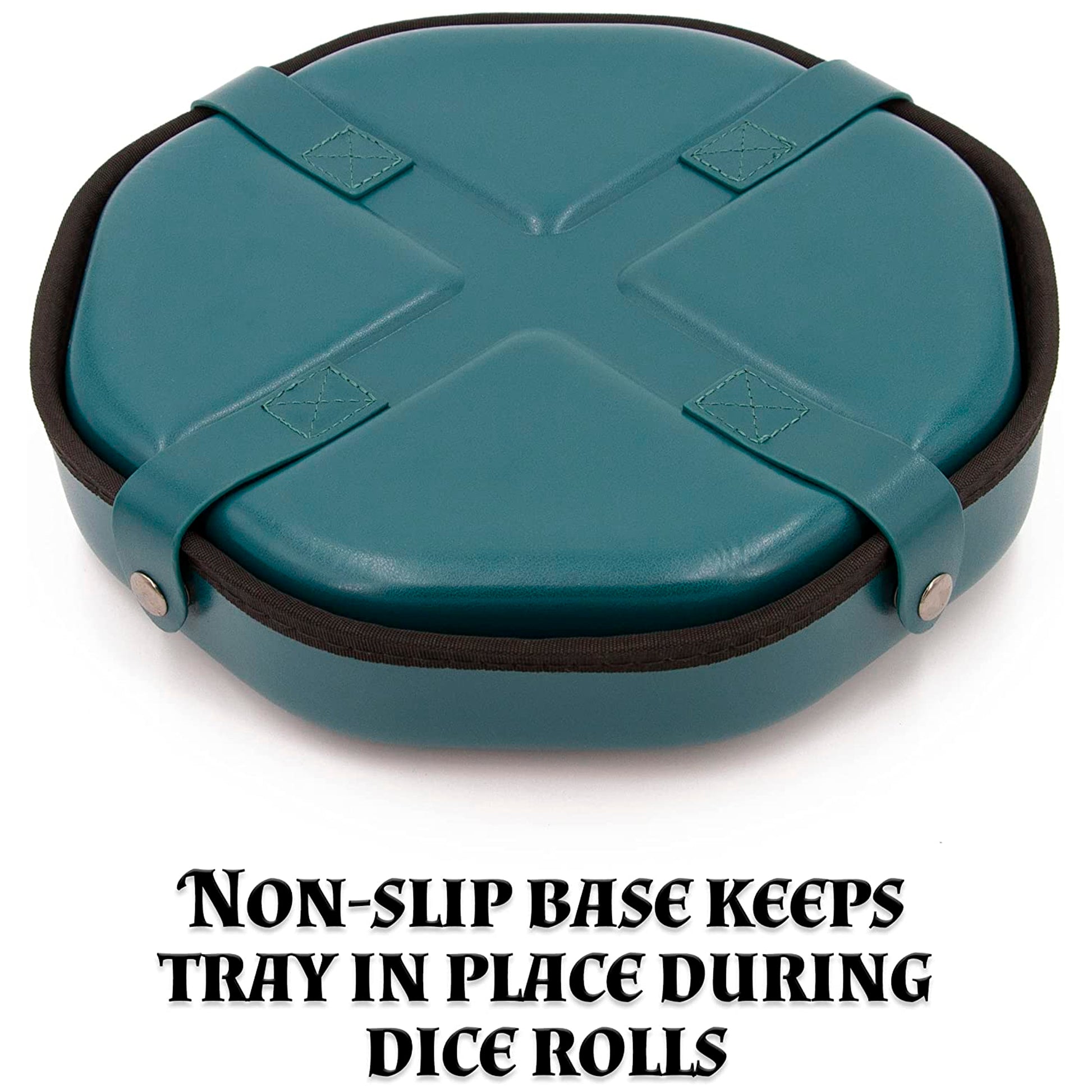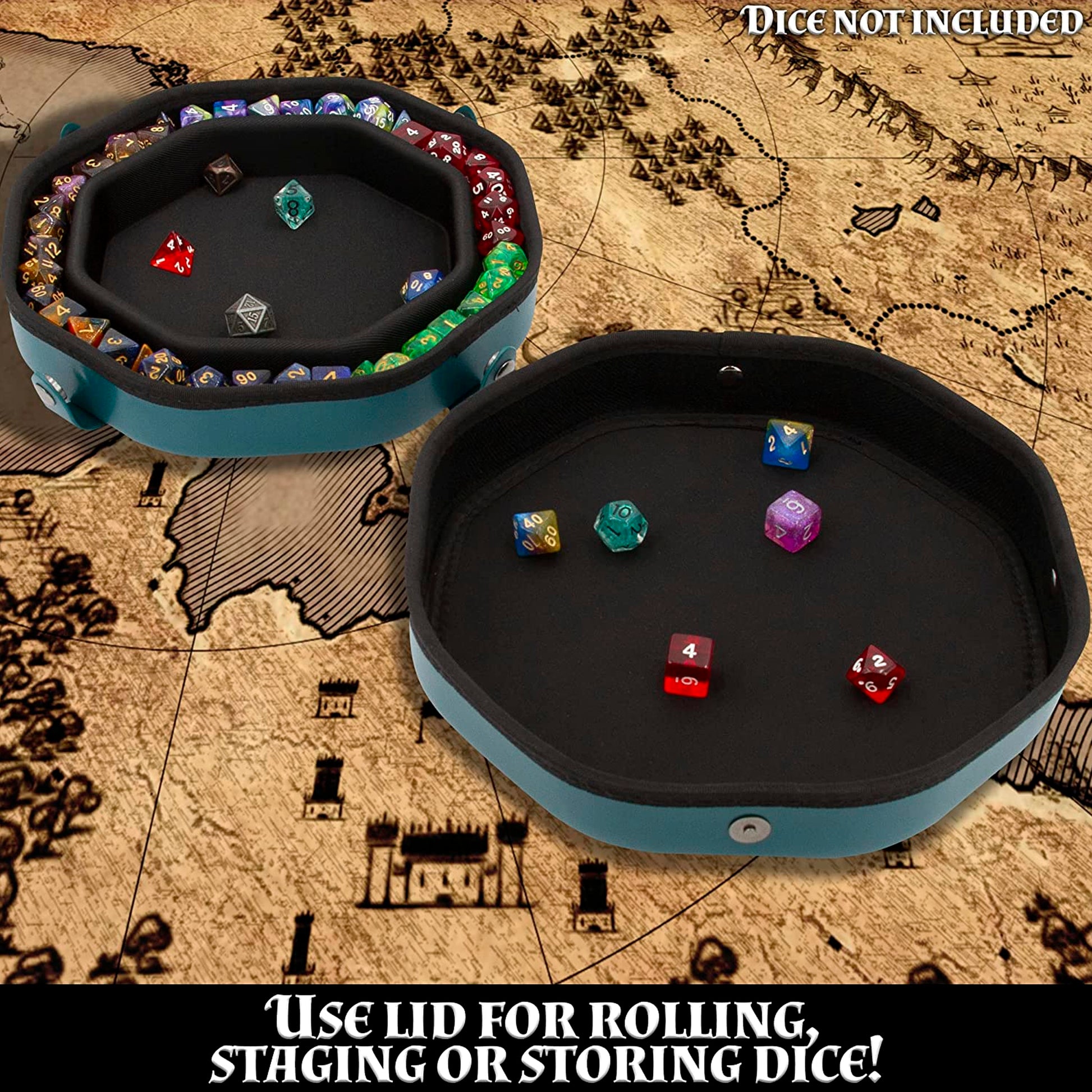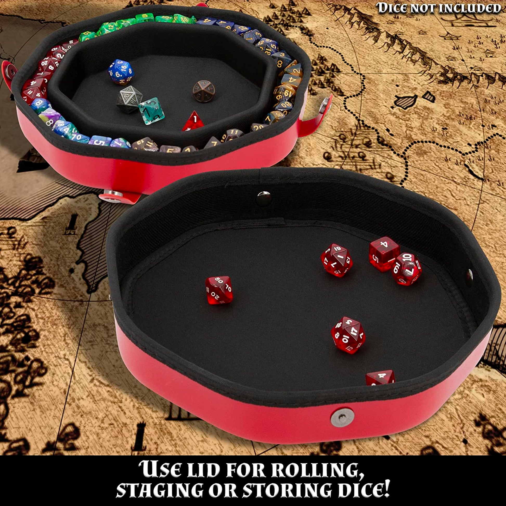 • Dual Rolling Surface Design: Lid doubles as portable dice tray for big party of adventurers - keep dice tray base at one end of table and lid on other end as dice game tray, lined with non-scratch soft neoprene materials protecting dice and dampening sound with versatile gaming solution.