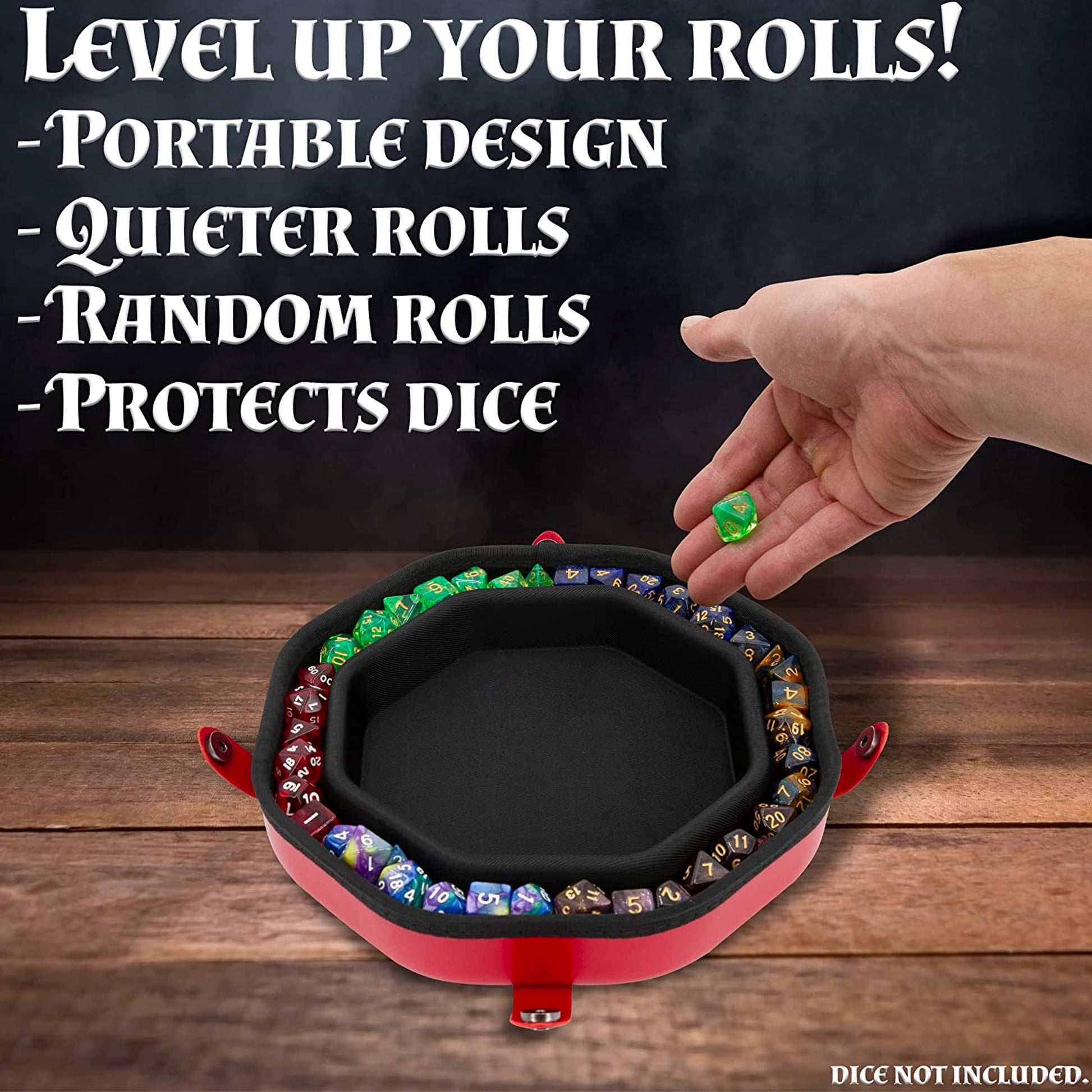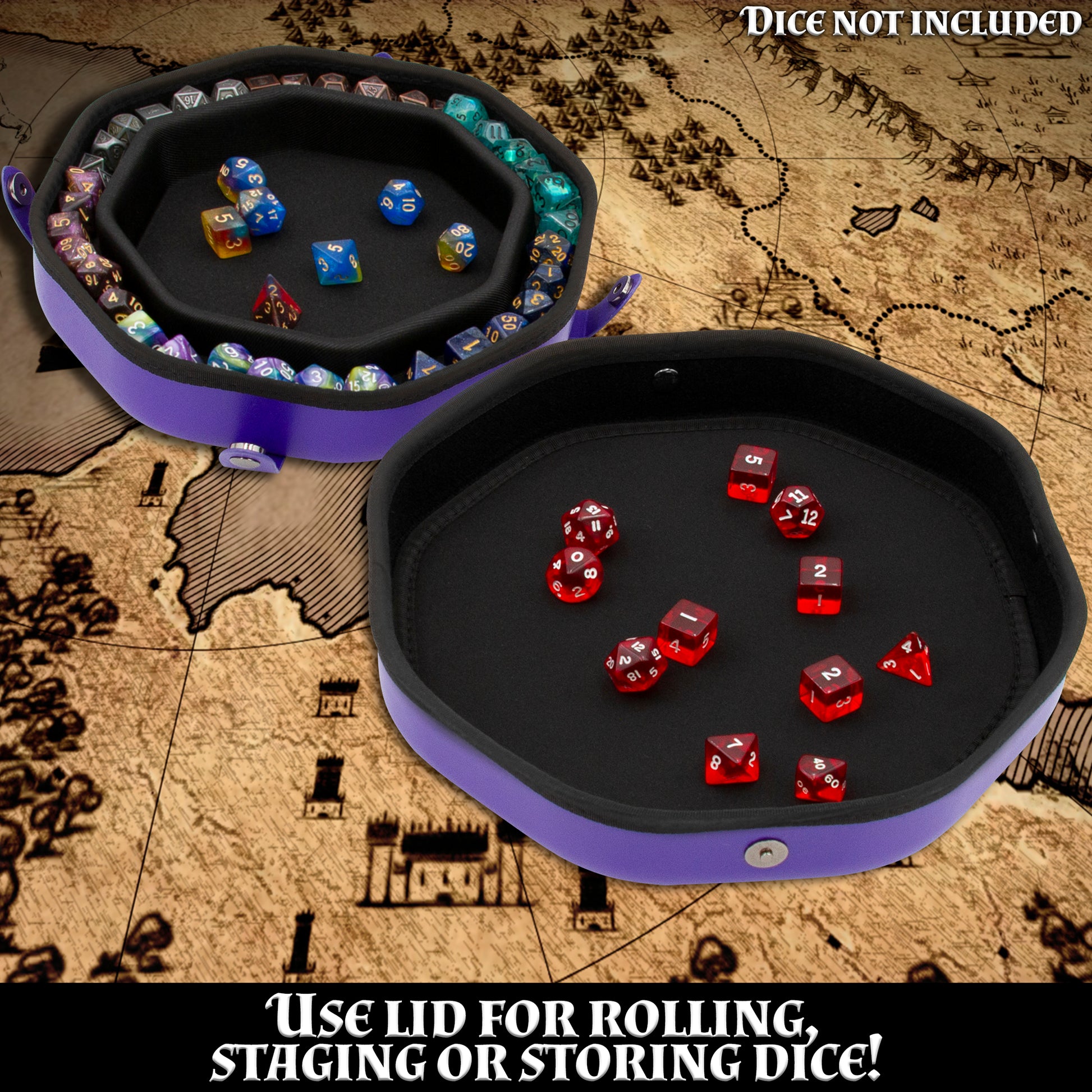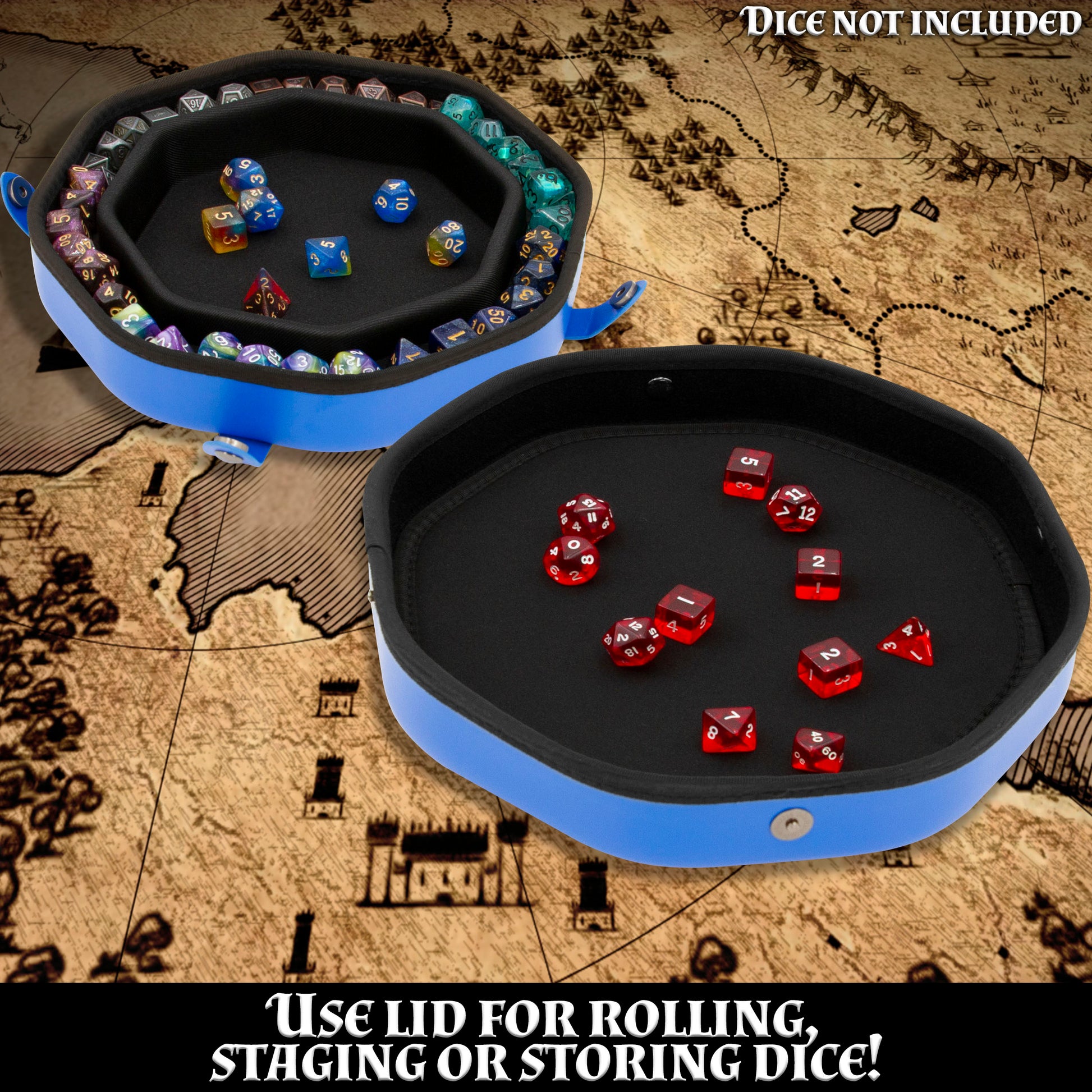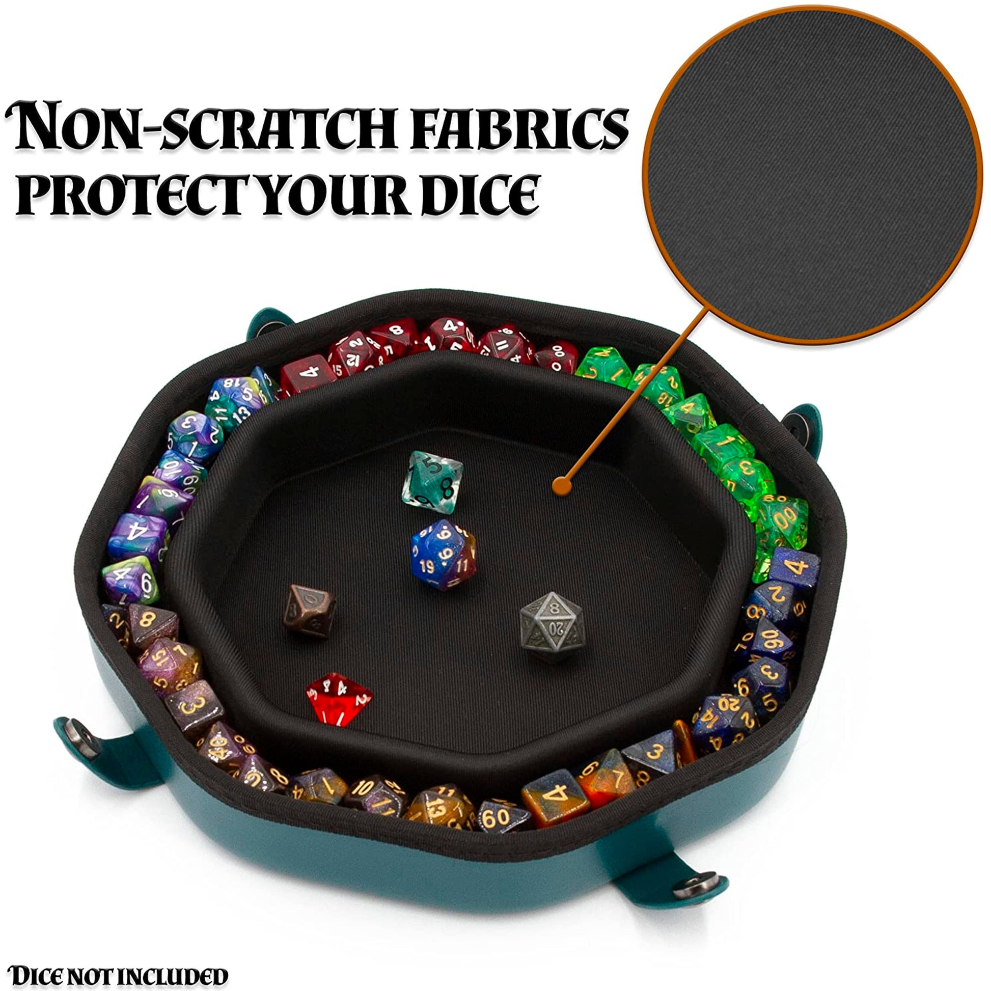 • Dual Rolling Surface Design: Lid doubles as portable dice tray for big party of adventurers - keep dice tray base at one end of table and lid on other end as dice game tray, lined with non-scratch soft neoprene materials protecting dice and dampening sound with versatile gaming solution.