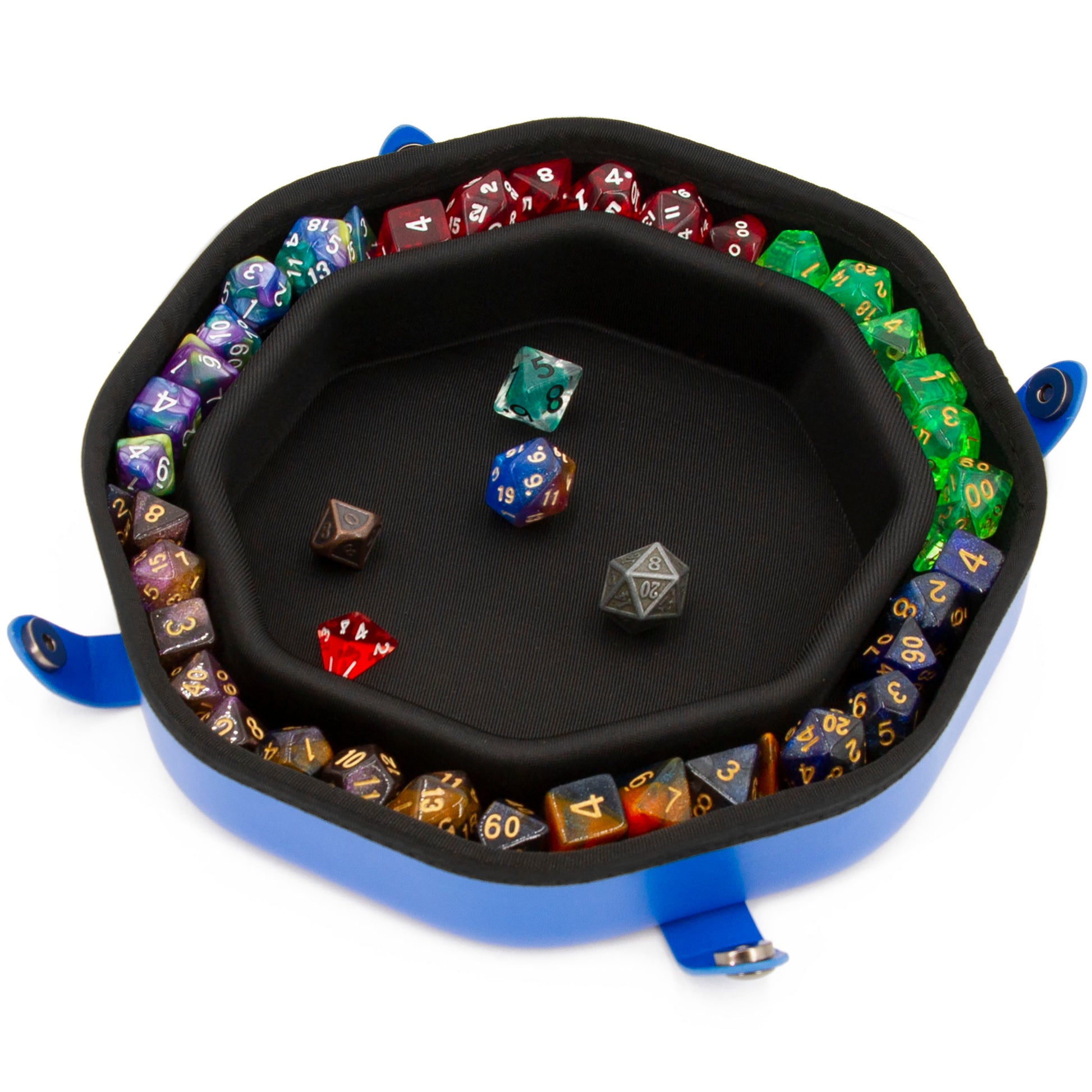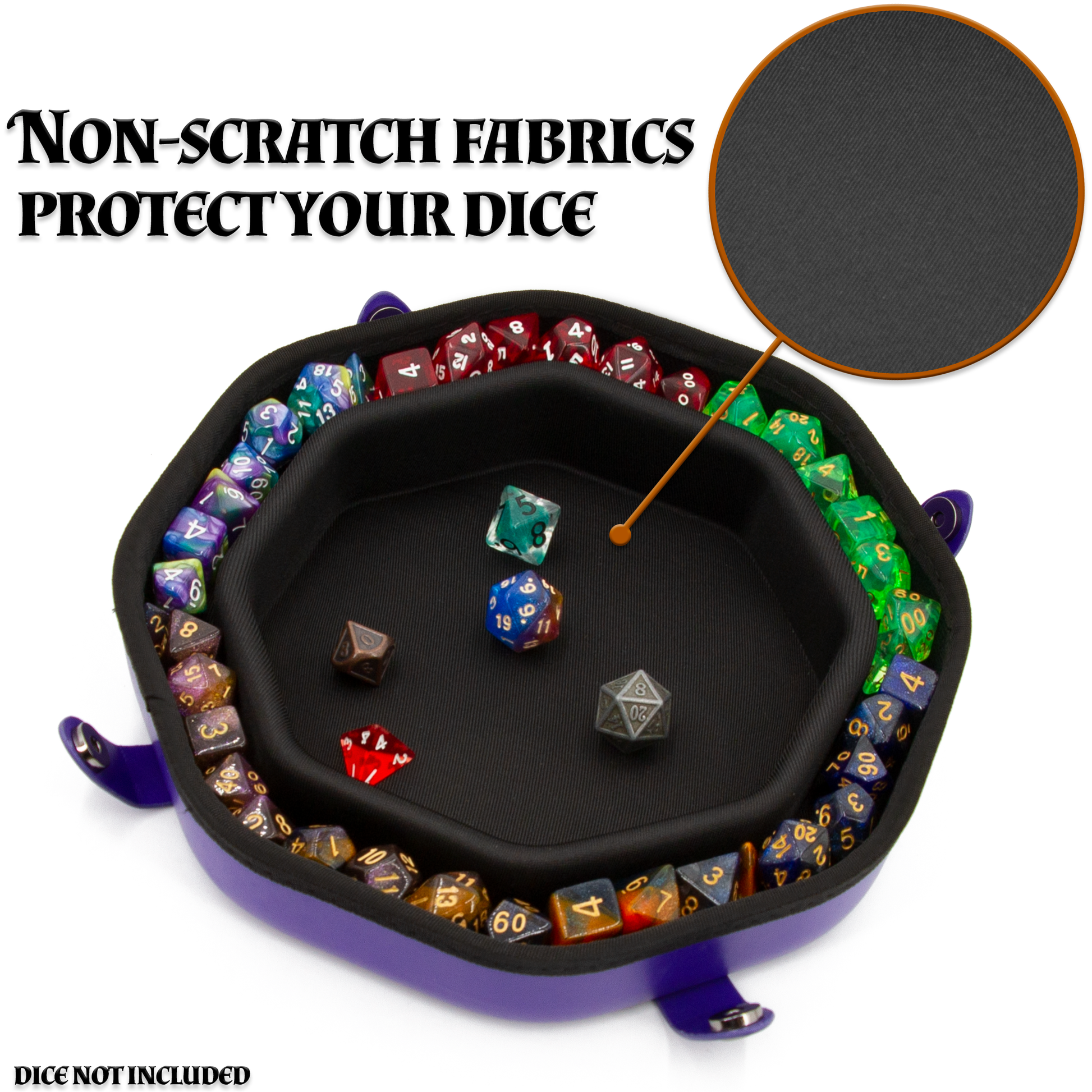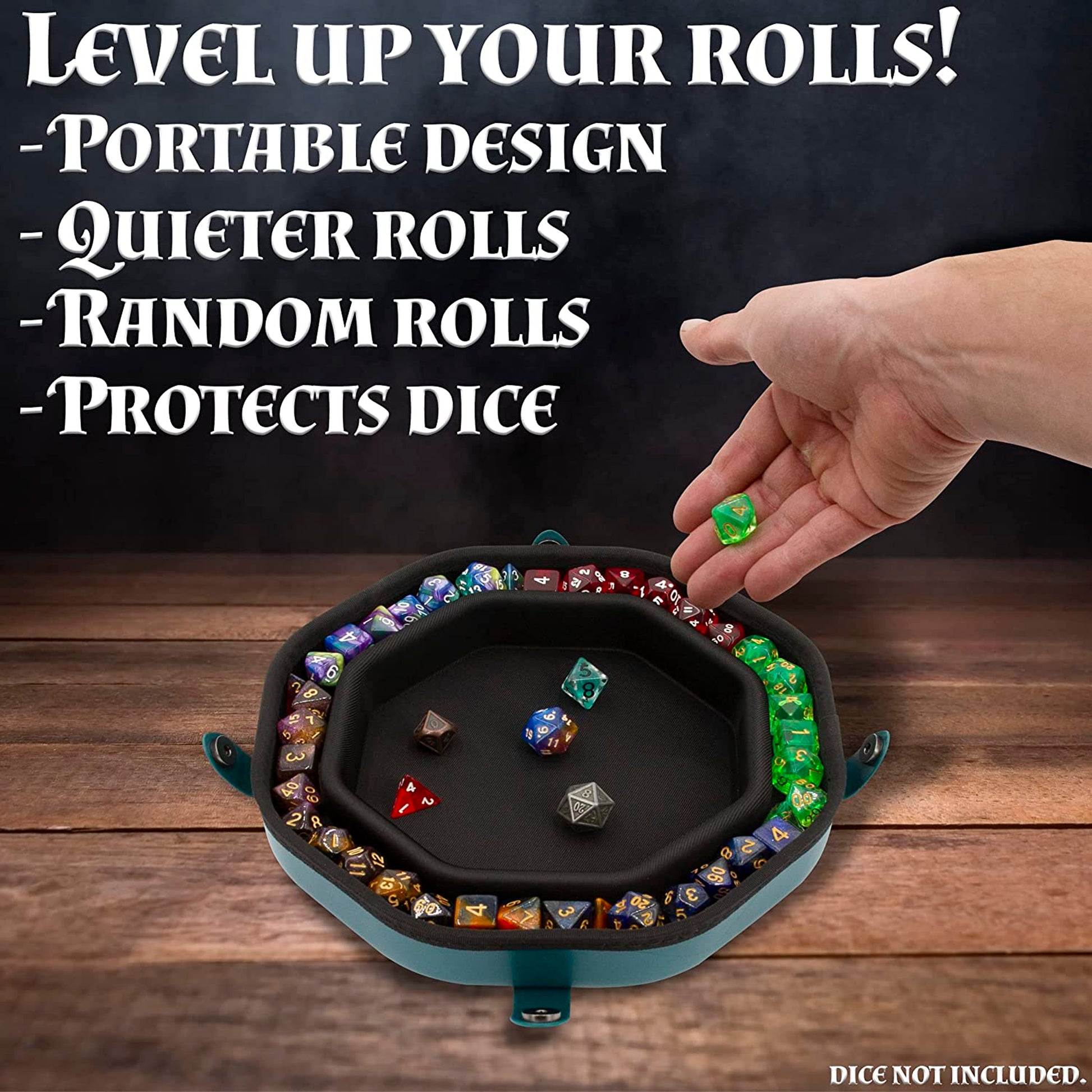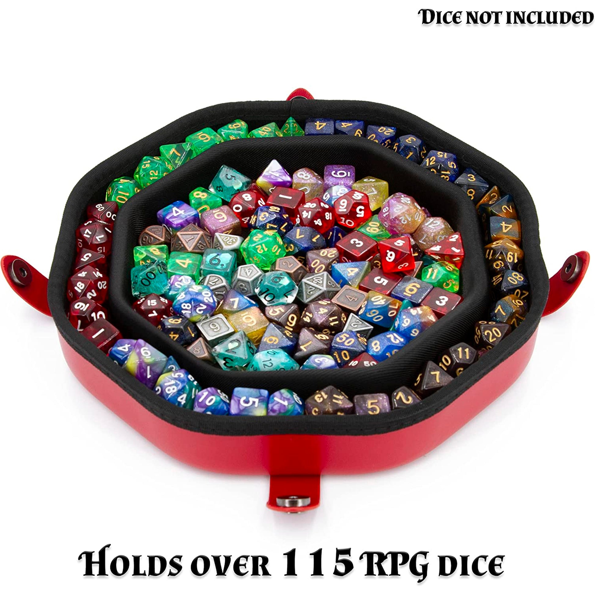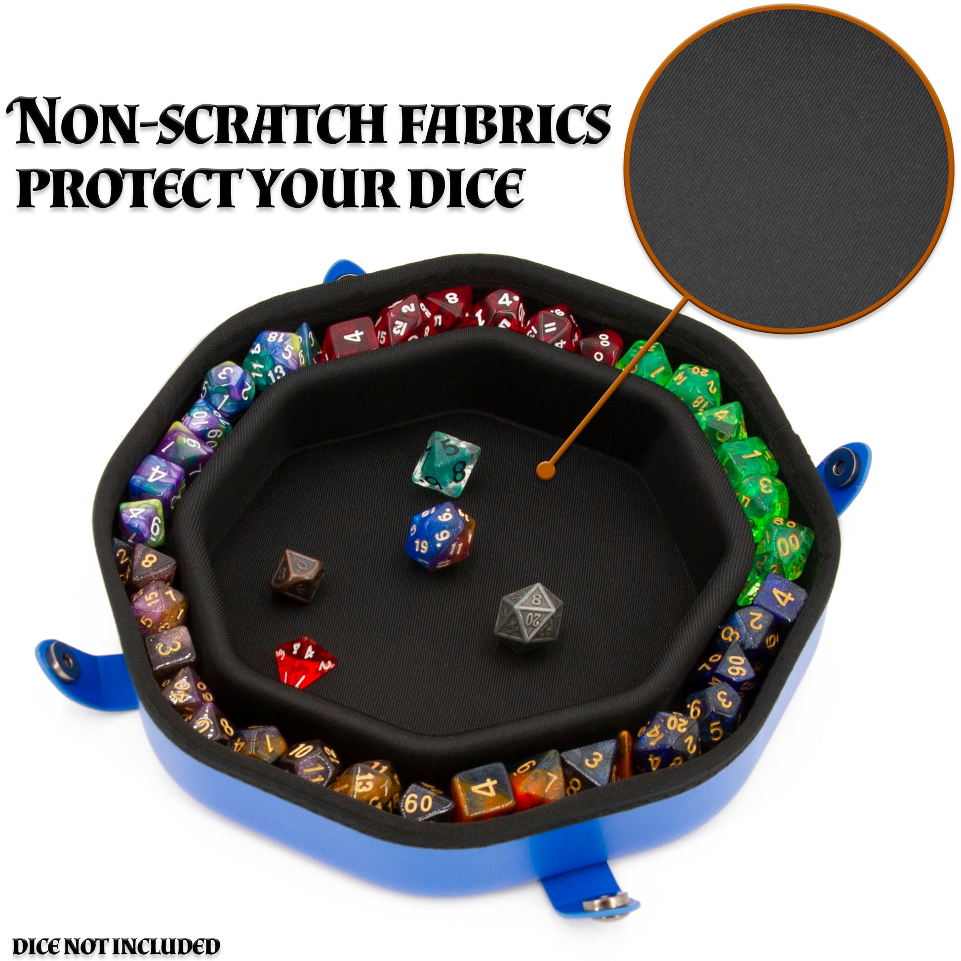 Dice Tray and Storage Case for Up to 115 RPG Dice - Dice Tray for Rolling with Magnetic Snaps, Embossed Design & Non-Scratch Interior