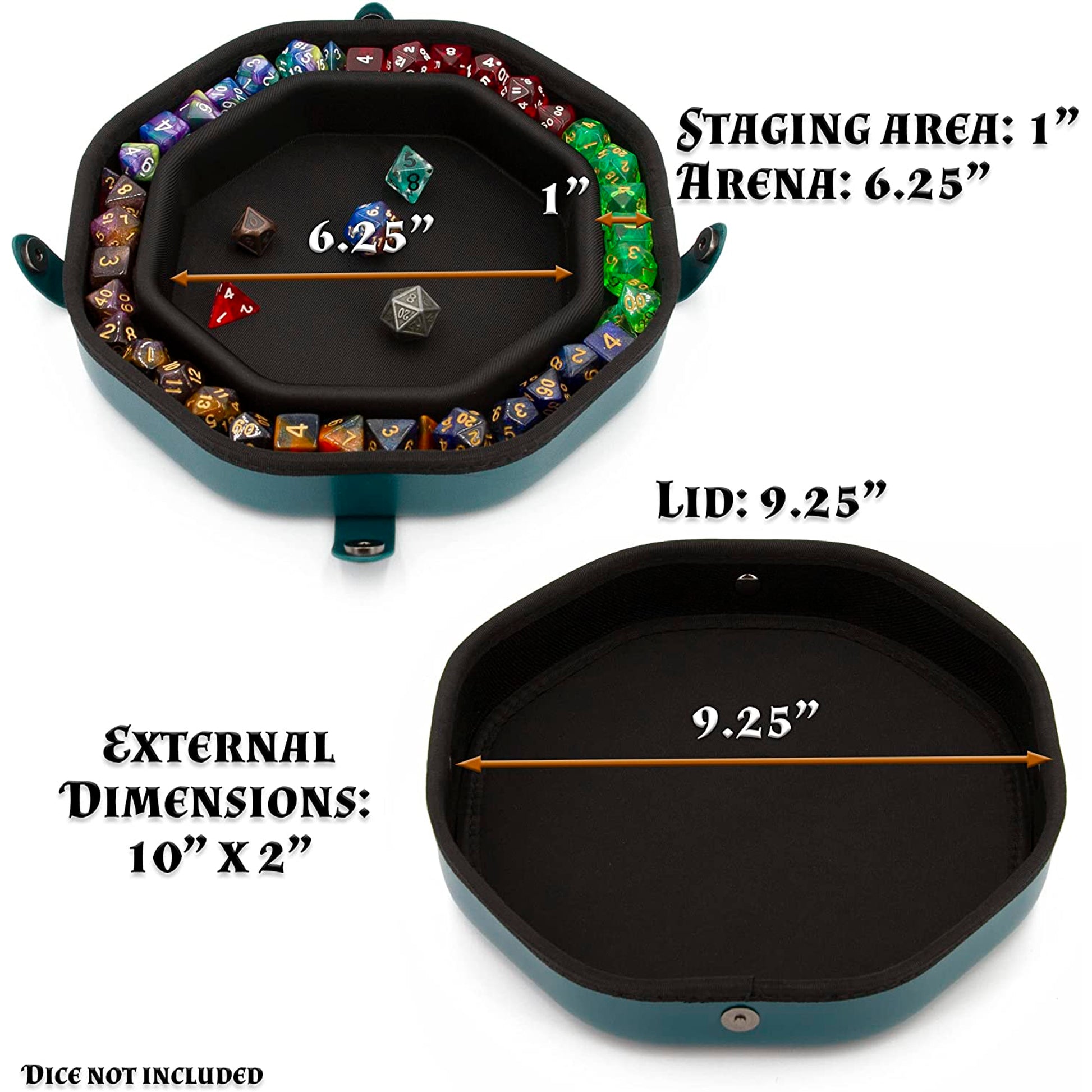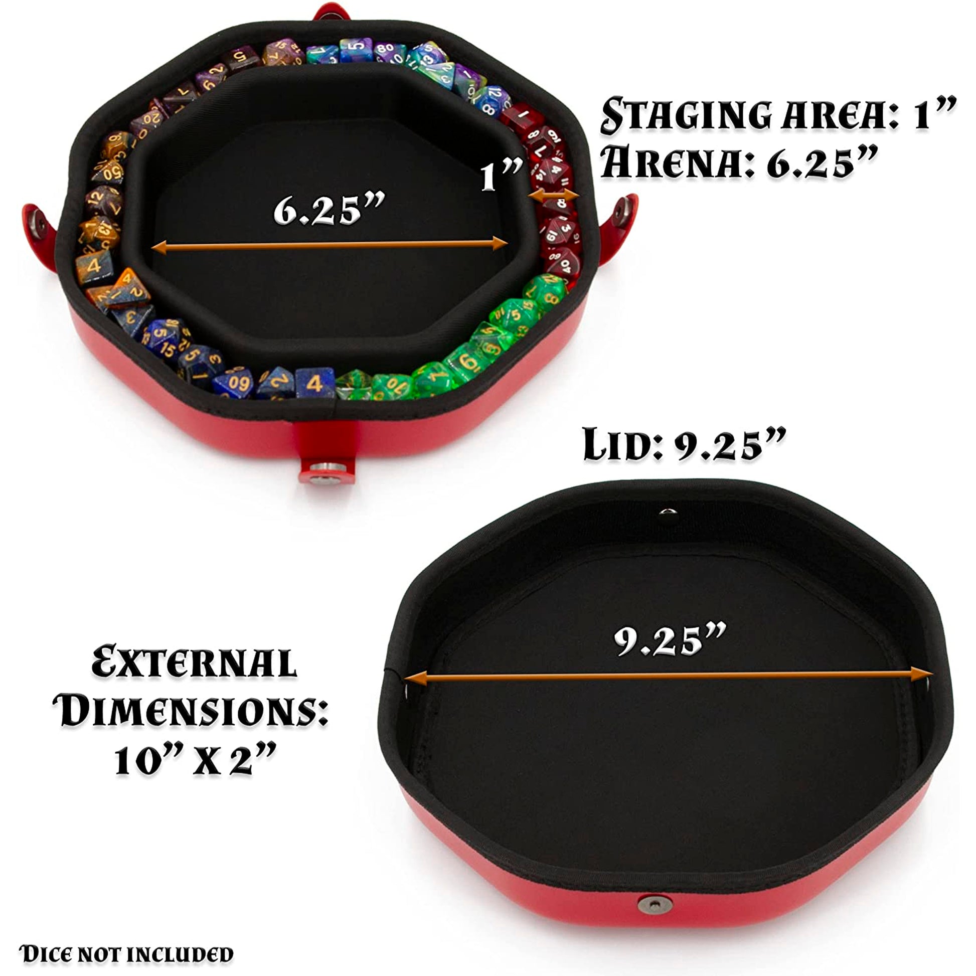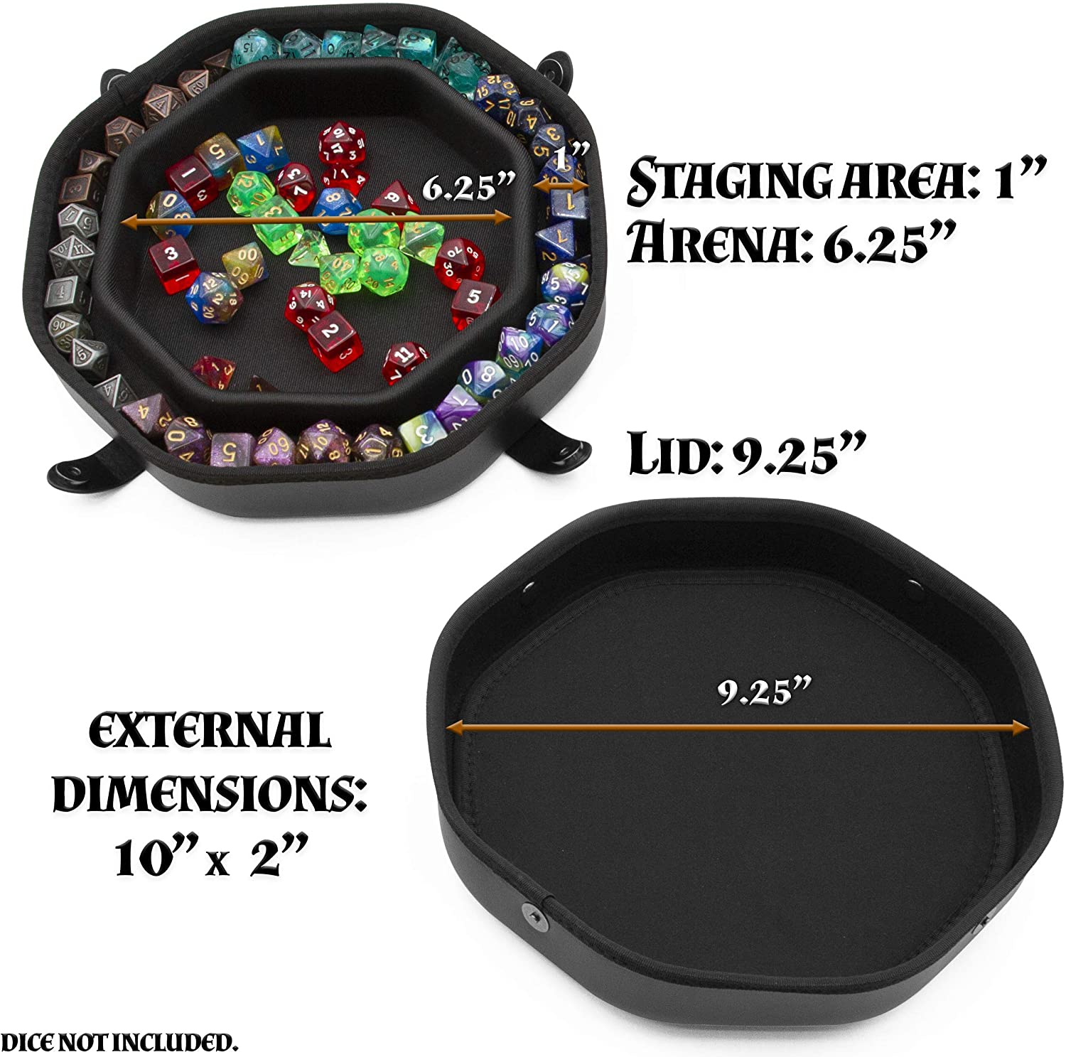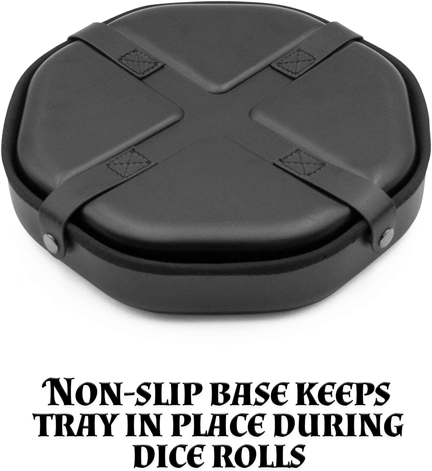 • Optimal Gaming Dimensions: External dimensions of 10" x 10" x 2" with dice arena measuring 6.5" across and staging area 1" wide accommodating most standard RPG dice, featuring non-scratch interior fabrics keeping dice pristine and non-slip backing keeping tray in place during play.