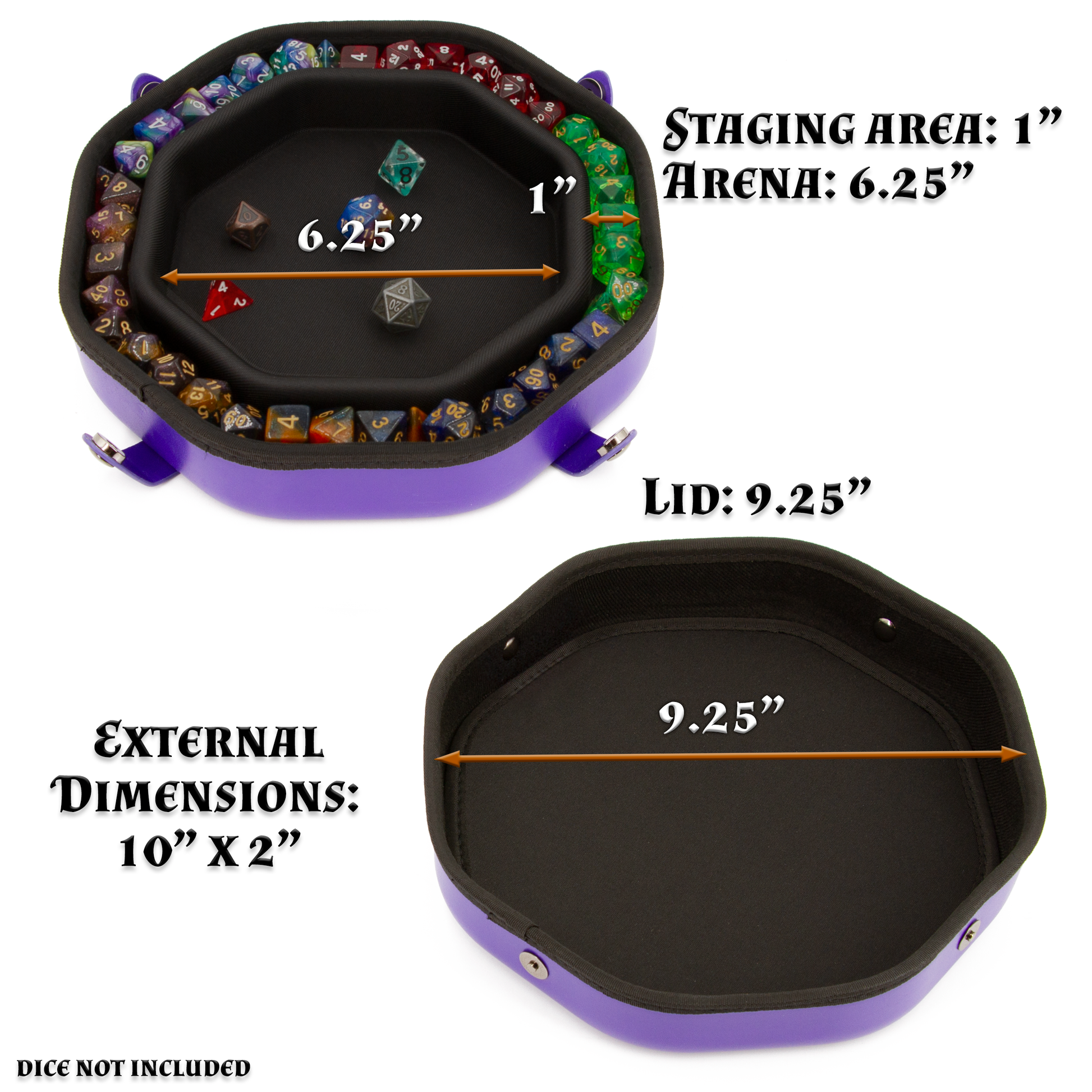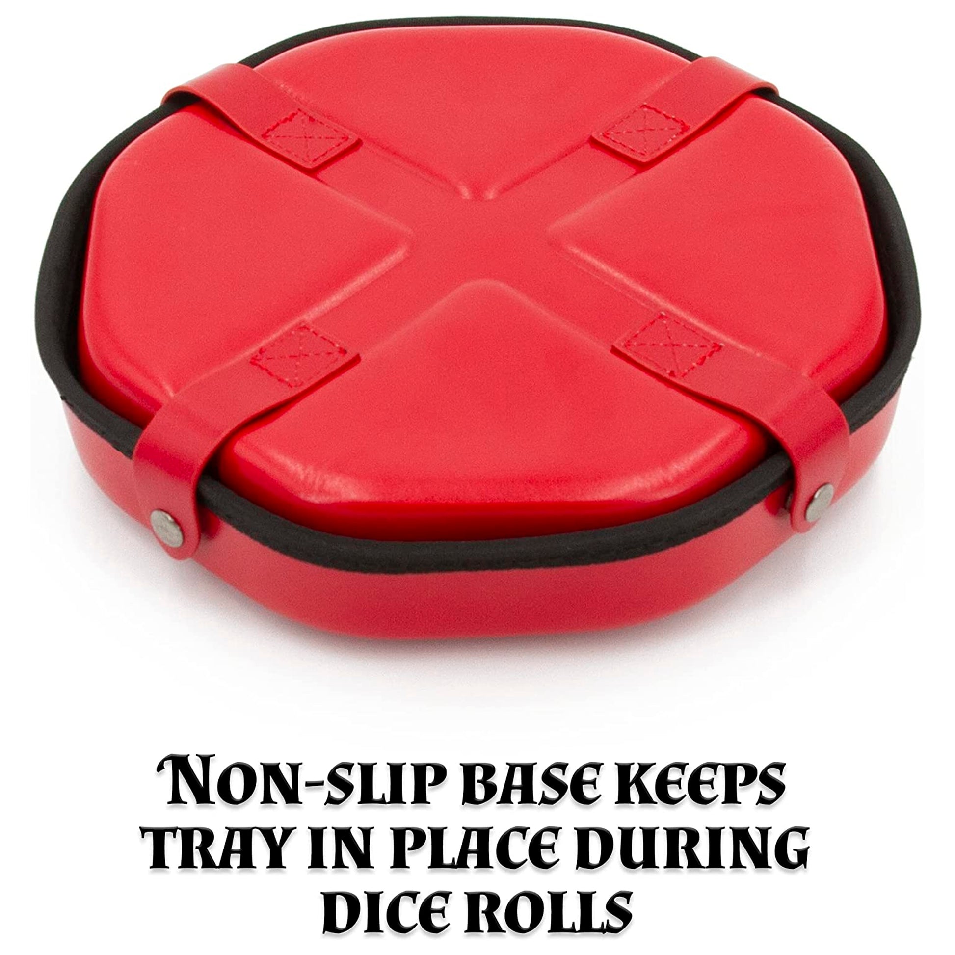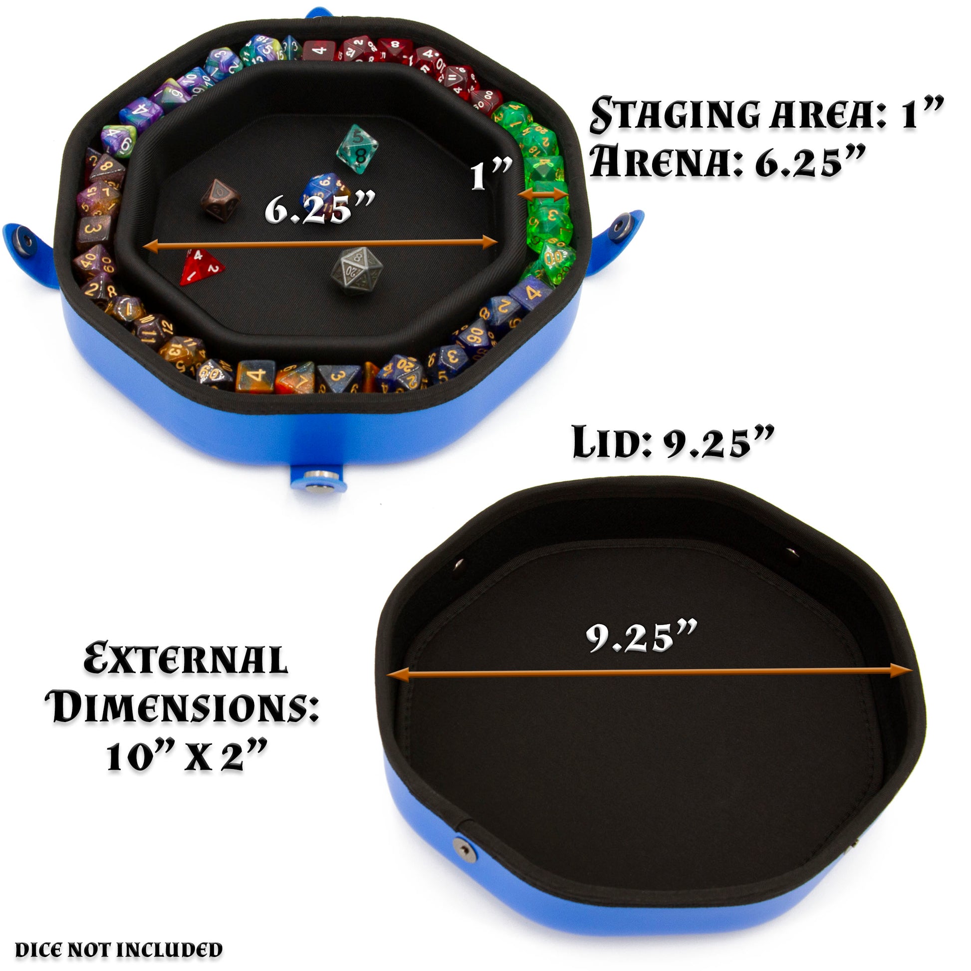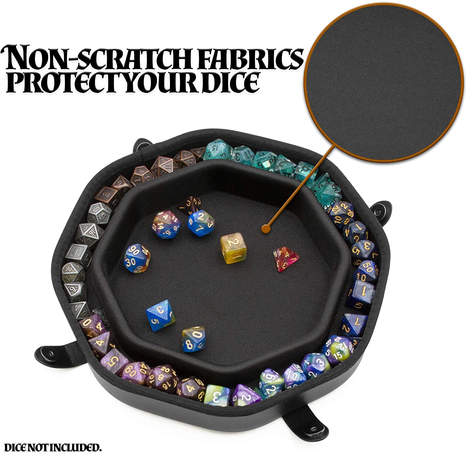 • Optimal Gaming Dimensions: External dimensions of 10" x 10" x 2" with dice arena measuring 6.5" across and staging area 1" wide accommodating most standard RPG dice, featuring non-scratch interior fabrics keeping dice pristine and non-slip backing keeping tray in place during play.