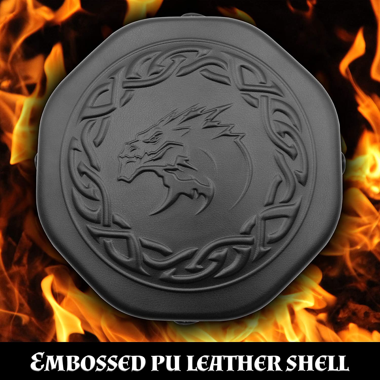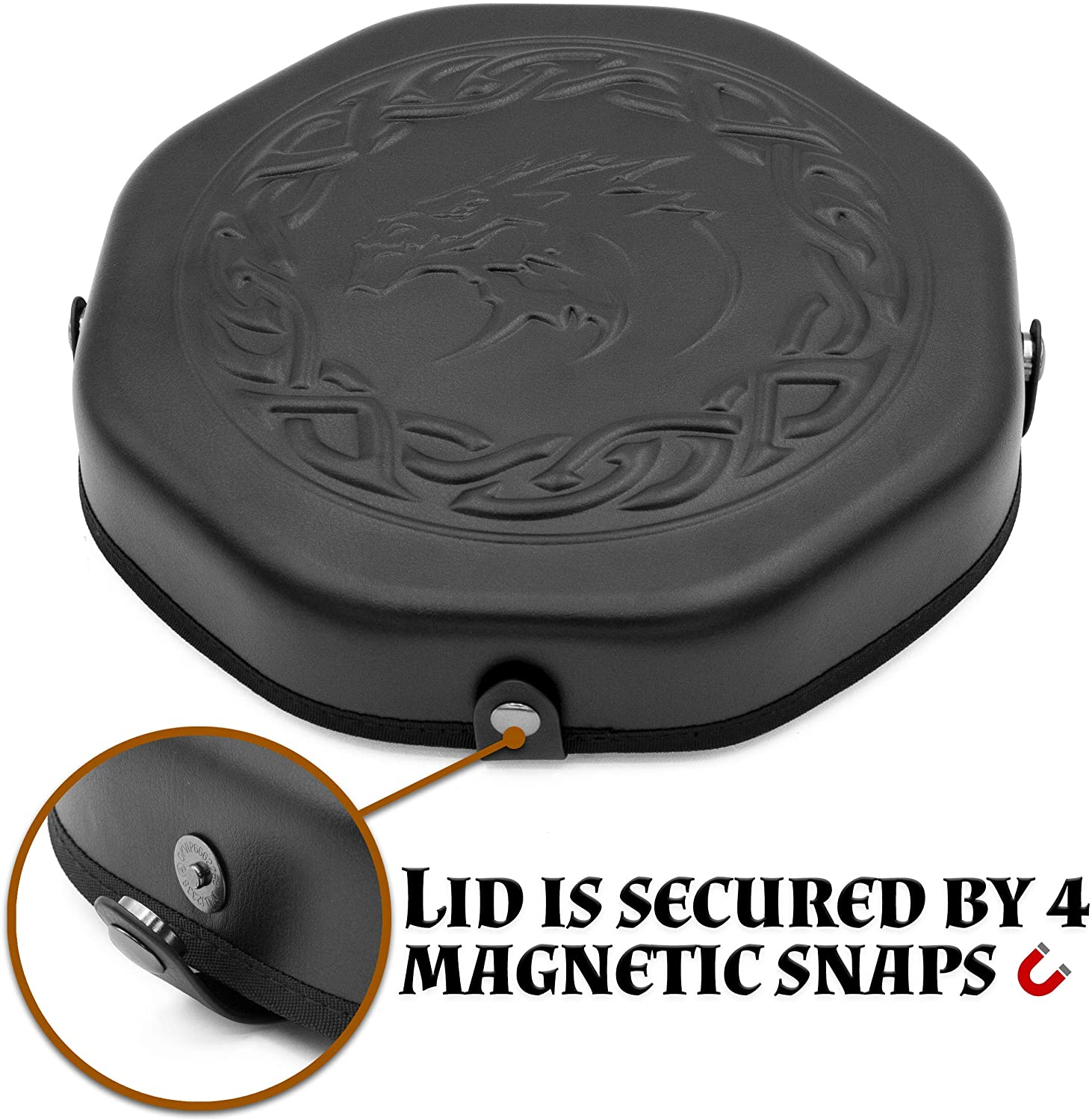 • Premium PU Leather Construction: CASEMATIX Dice Rolling Tray and Travel Case constructed with high-quality hard shell PU leather materials protecting your dice during travel and providing stable and reliable surface during play, featuring impact-resistant hard shell PU leather exterior with dragon artwork molded directly into the case's shell.