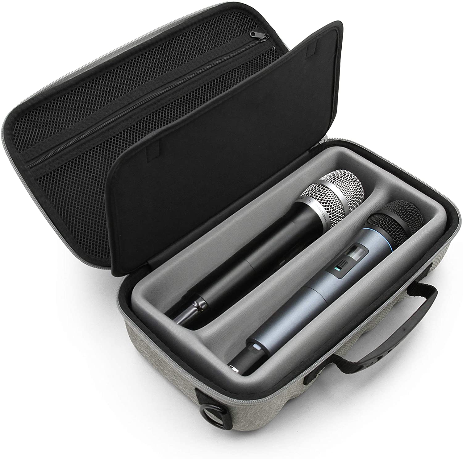 • Dual Microphone Slot Protection: Two form factor slot compartments snugly holding wireless mics with maximum size of 10.5" x 2.0" each, featuring padded interior divider keeping them separated from accessories housed under lid for organized protection.