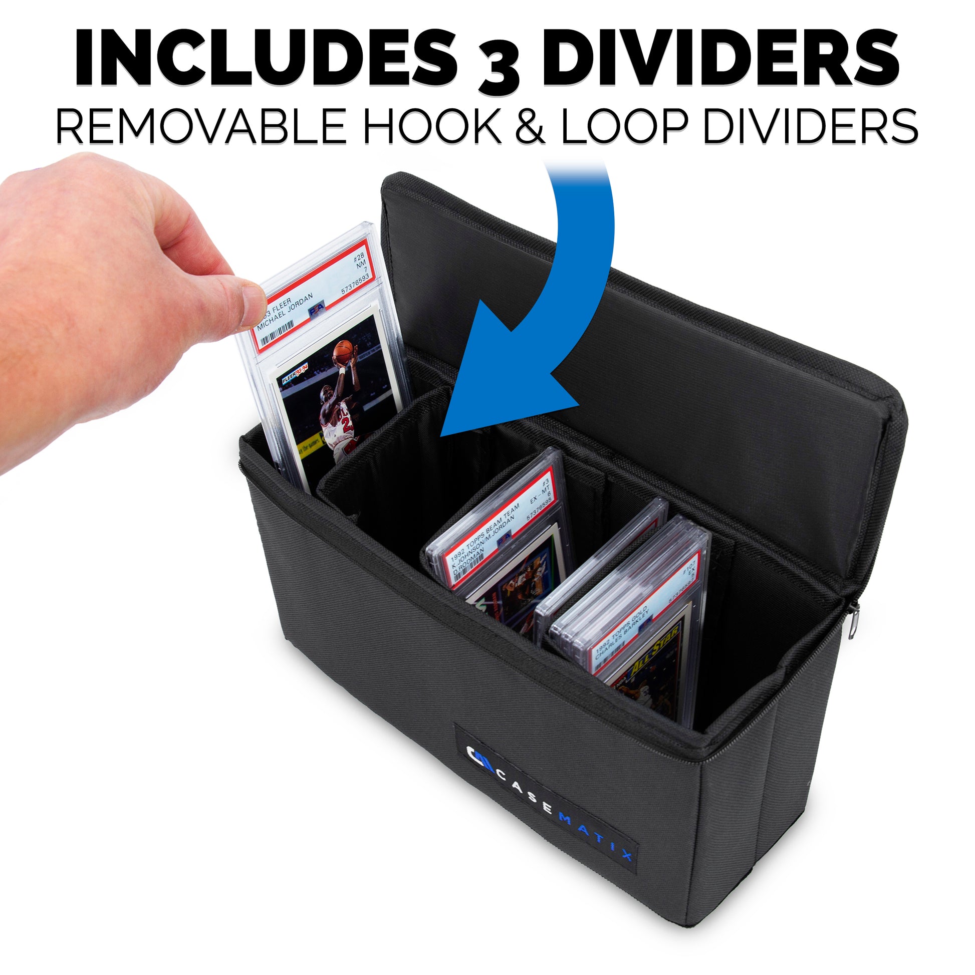 • Includes Three Removable Partitions: Internal graded cards storage has three padded dividers that attach to the non-scratch walls via hook and loop fastener. They can be removed or added as needed to create graded sections, prevent movement and keep your cards held upright, making grouping and organizing your collection effortless.