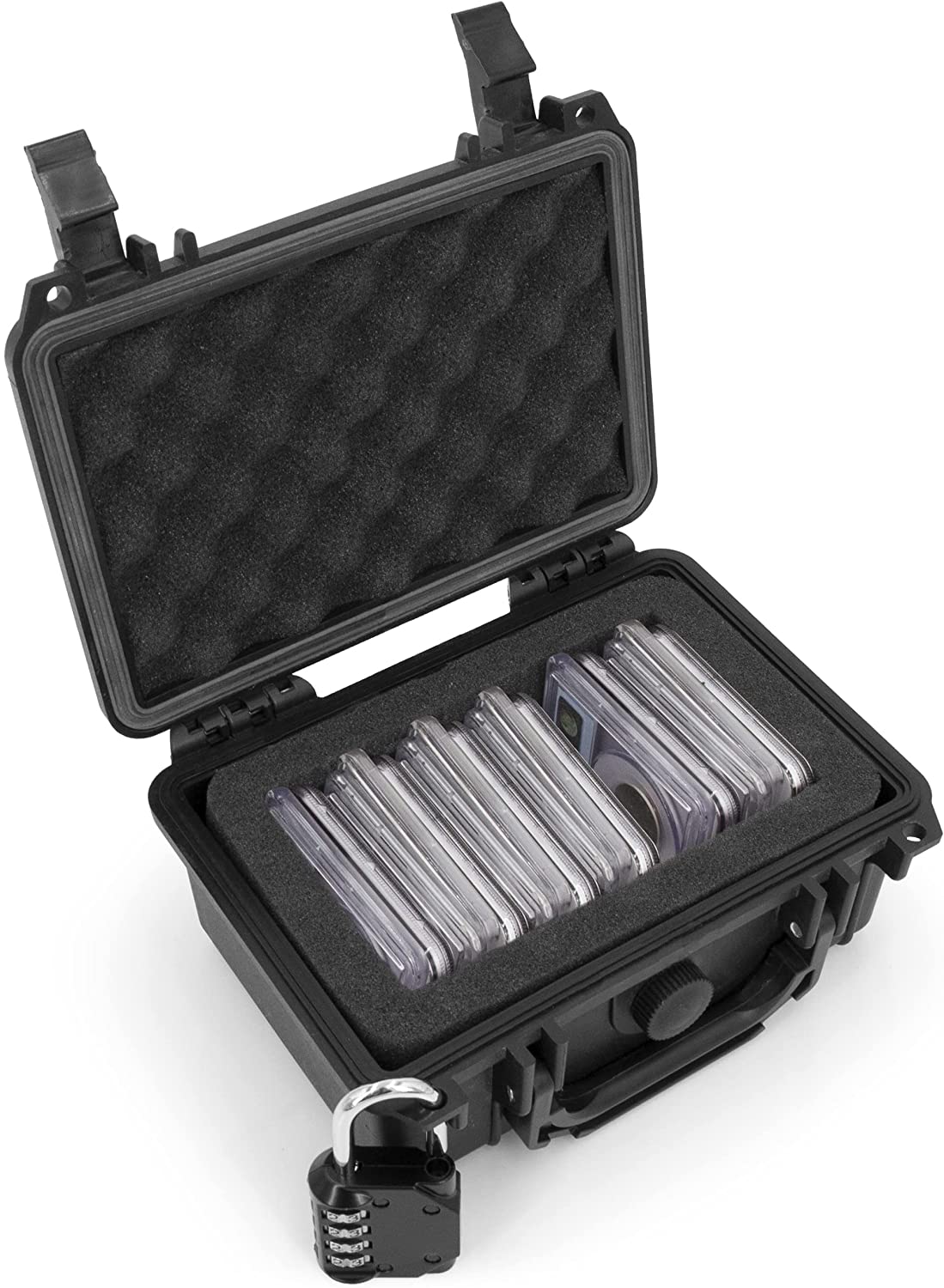 Graded Coin Case Compatible with 15+ PCGS or NGC Coin Slabs, Waterproof Coin Storage Box with Customizable Foam, Includes Padlock