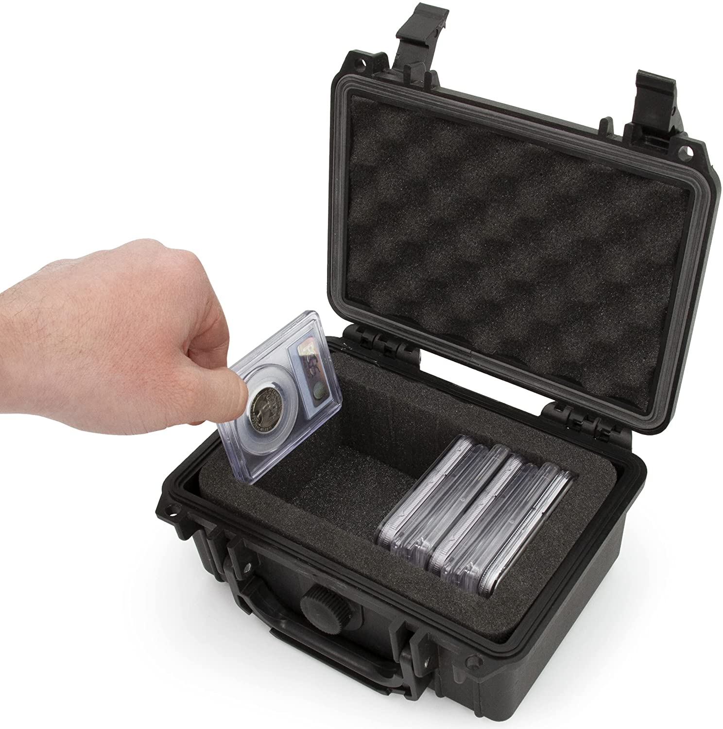 • Waterproof & Airtight Seal Technology: Features waterproof O-ring seal locking out air and moisture for truly protective coin box holder, plus airtight valve helping prevent moisture, dust, and dirt from damaging your valued coin collector slabs.