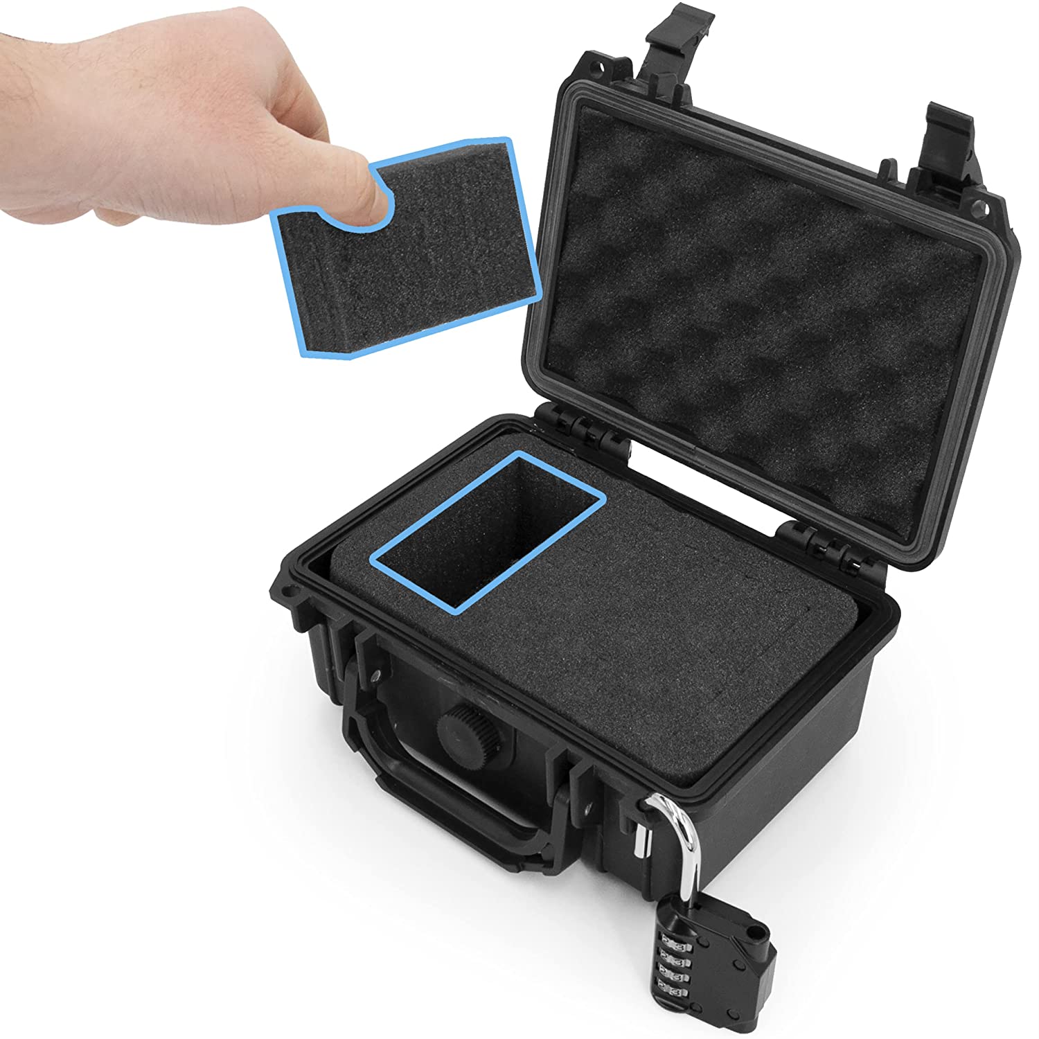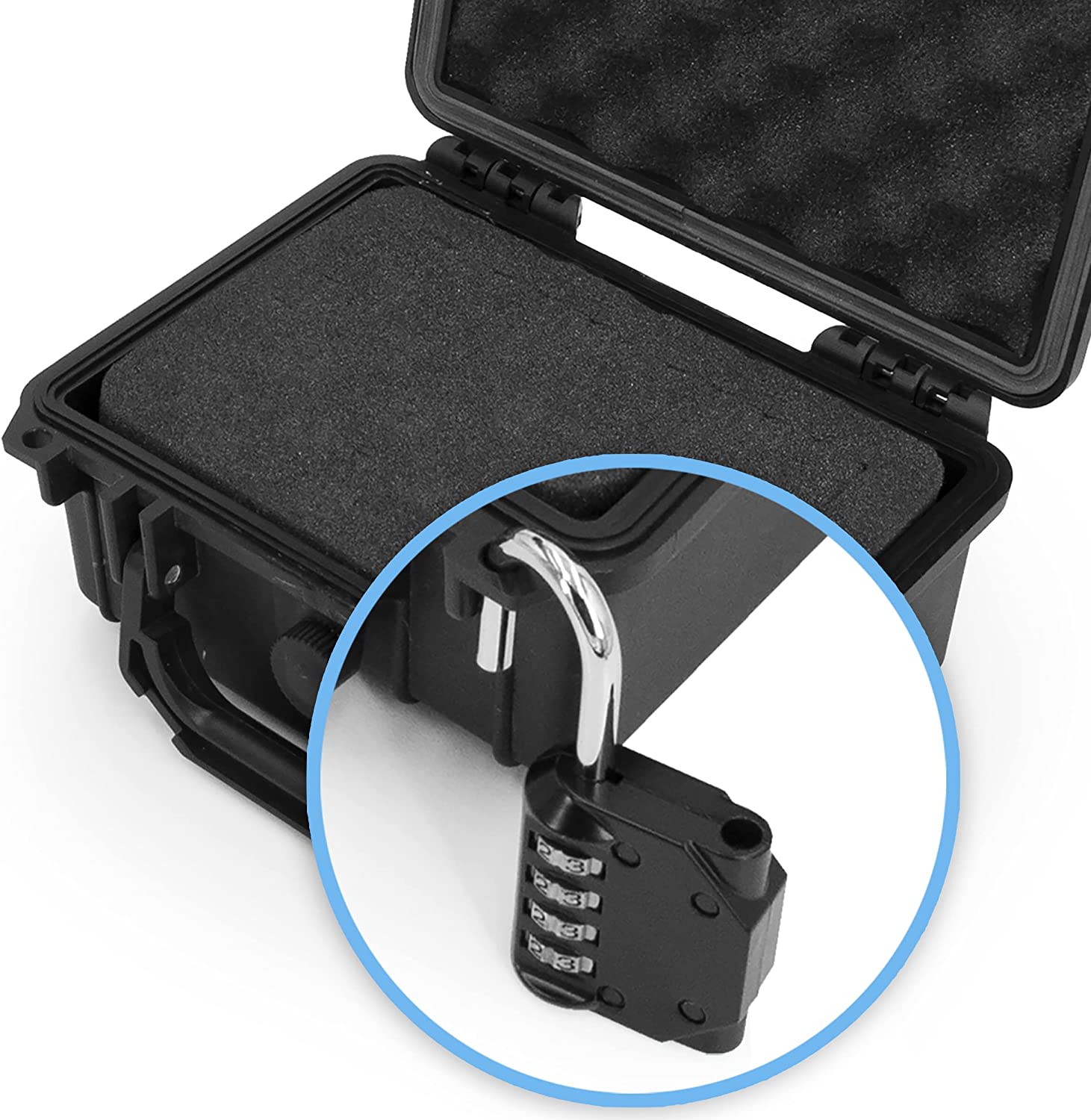 • Discreet Travel-Ready Design: External dimensions of 8.0" x 6.5" x 3.5" with folding carry handle making case a breeze to bring along, including two padlock rings and lock keeping case closed during storage and transport with compact portability.