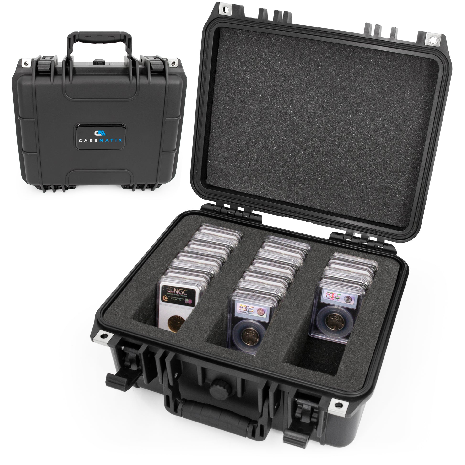 Graded Coin Case Compatible with 55+ PCGS or NGC Coin Slabs, Waterproof Coin Storage Box with Customizable Foam