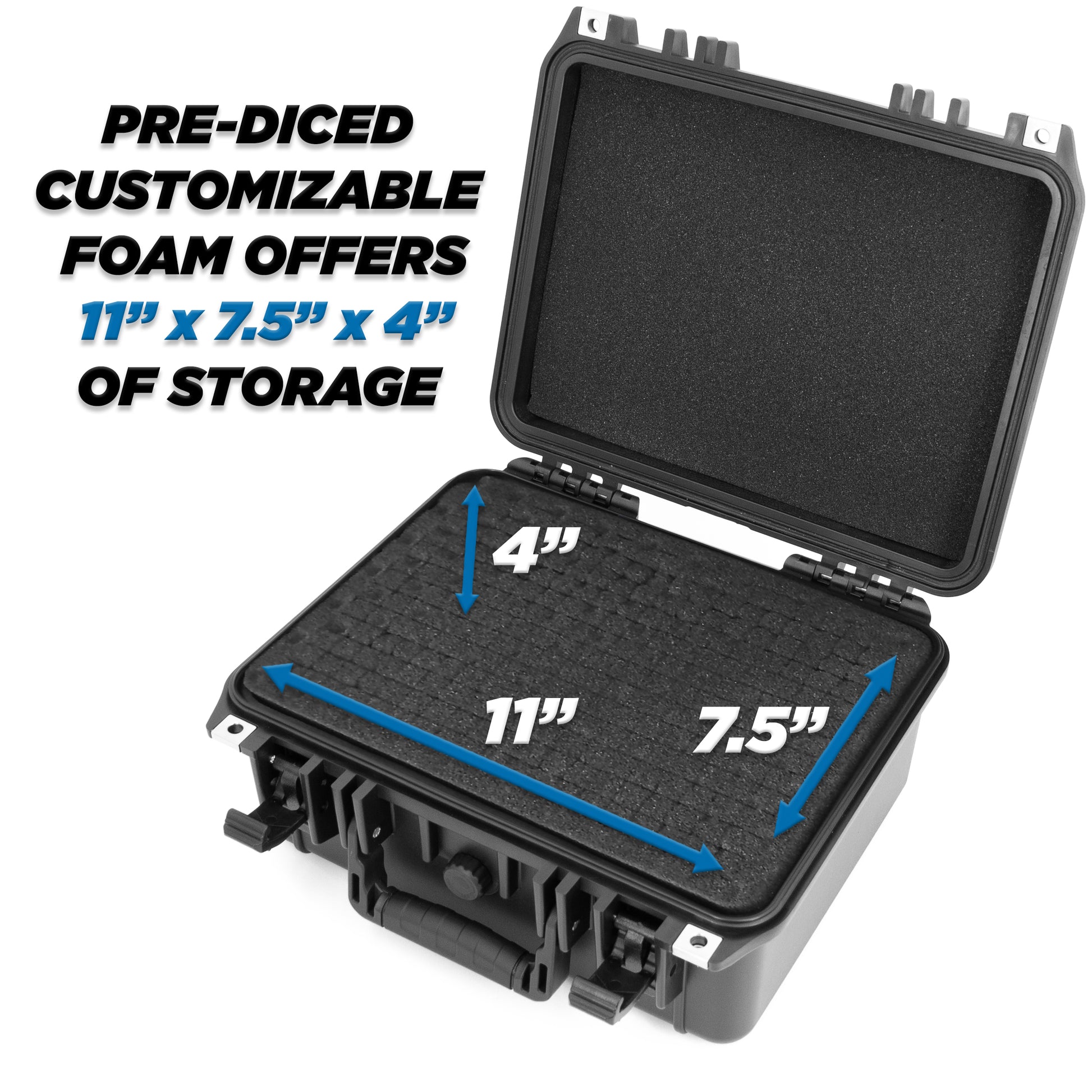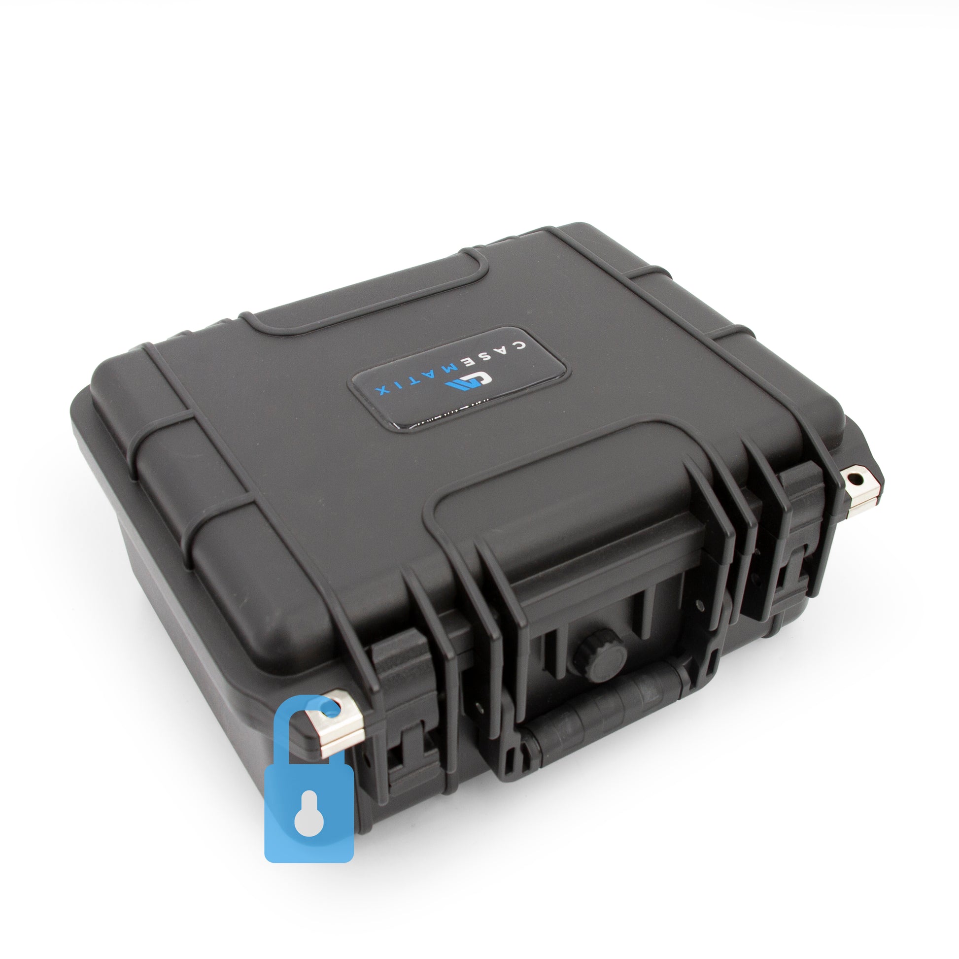 • Travel-Ready Security: Designed with folding carry handle and compact 13" x 11.5" x 6" external dimensions for easy transport. Includes two padlock rings (lock not included) to keep case securely closed during travel.