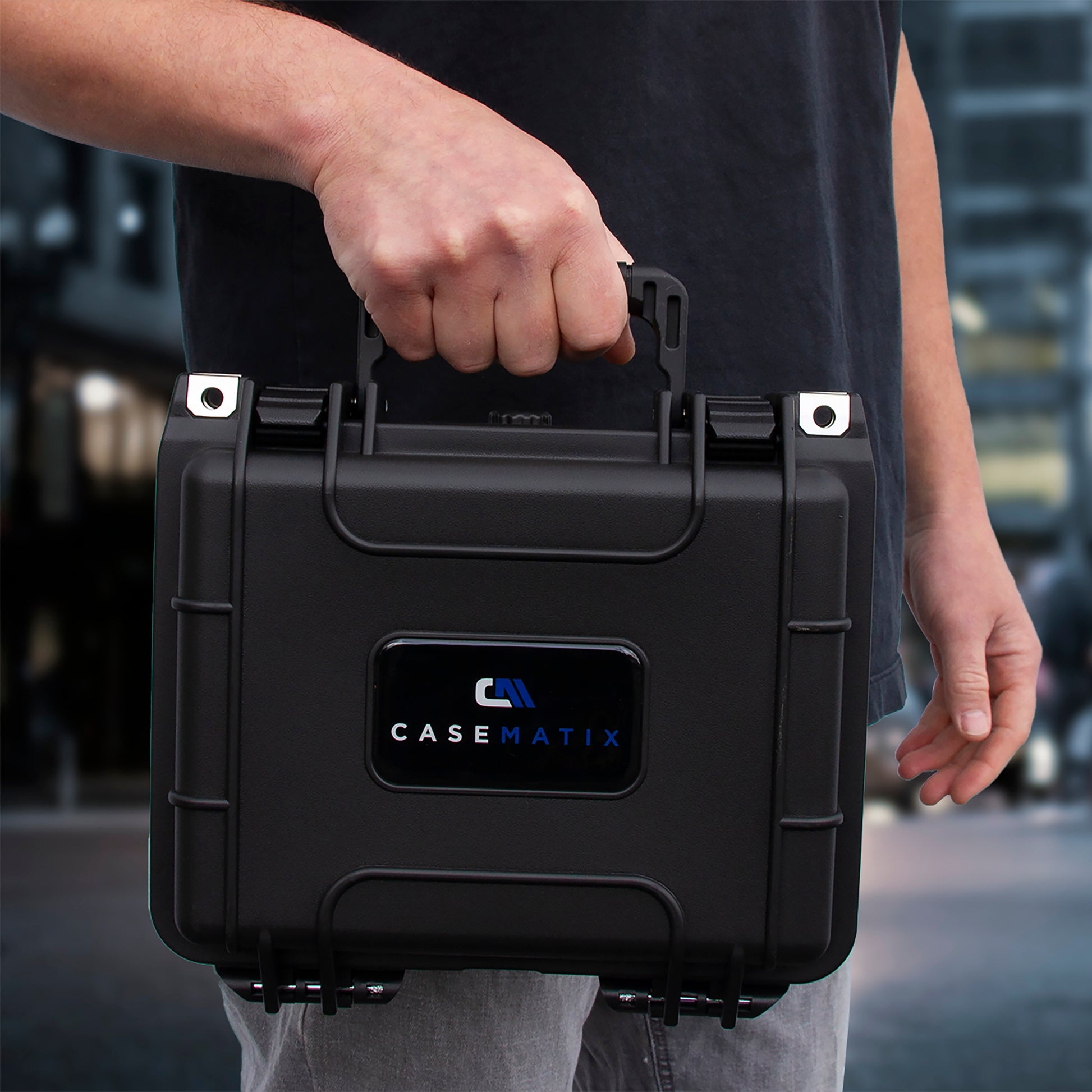 • Discreet Travel-Ready Design: Compact external dimensions of 10.9" x 9.0" x 7.0" with built-in folding carry handle for easy transportation, two padlock rings for added security, and compact sizing perfect for storage in safes.