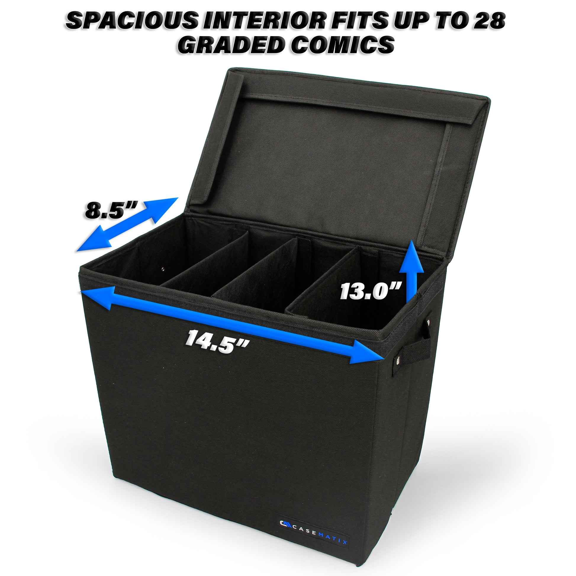 • Holds 28 Graded Comics: CASEMATIX light duty folding graded comic book case designed to securely store 28 graded comics - features hard shell exterior and scratch-resistant interior, includes 3 removable dividers to separate comics