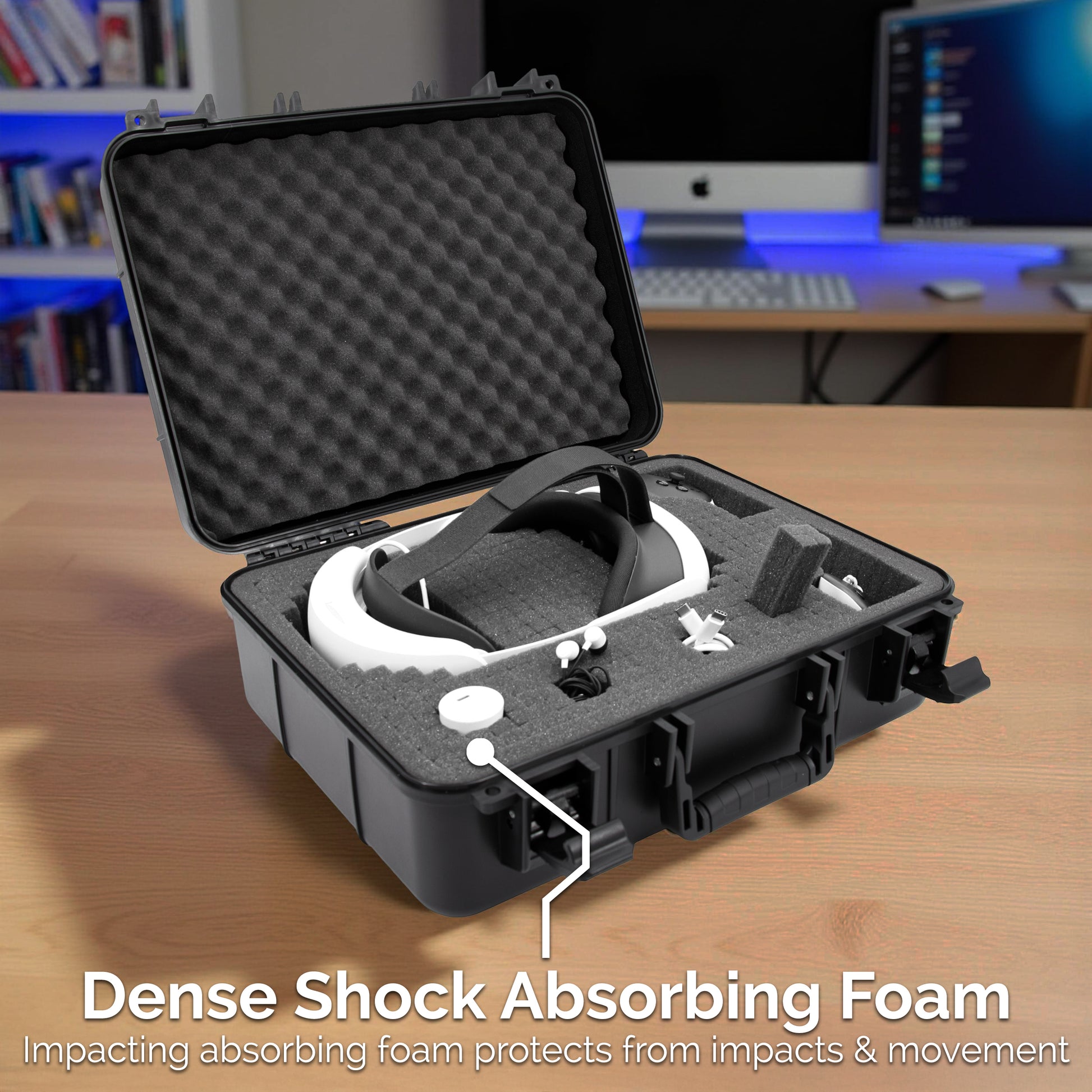 - [COMPATIBLE WITH META QUEST, QUEST 2, QUEST 3, QUEST 3S VR HEADSETS]: This VR headset case features a hard shell exterior and customizable foam for your headset, controllers, cables, headphones and other accessories!