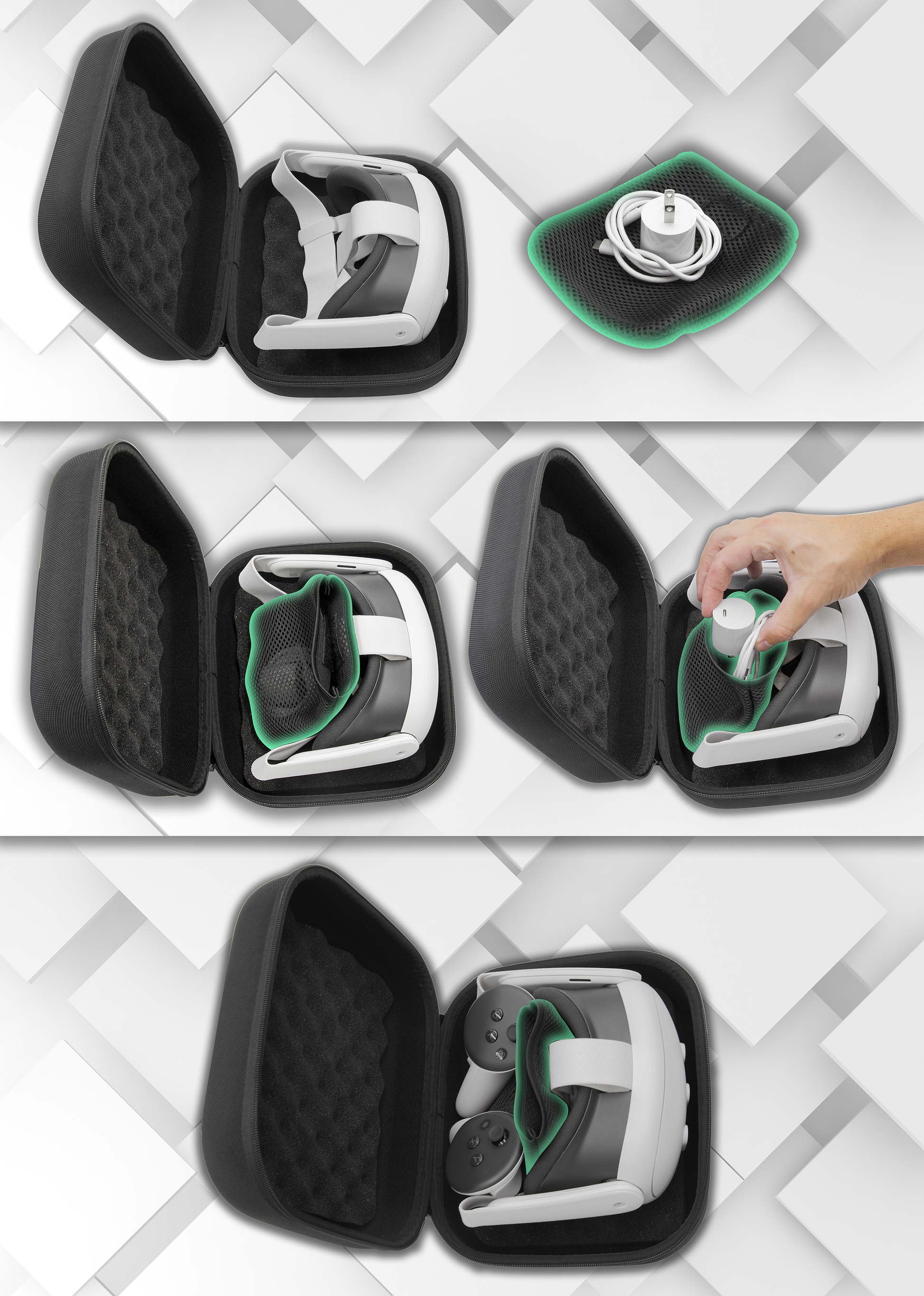 • Includes Accessory Bag for Charger and Cables: Place your power adapter and charging cable inside the included accessory pouch - controllers can be nested inside the headset for organized storage.