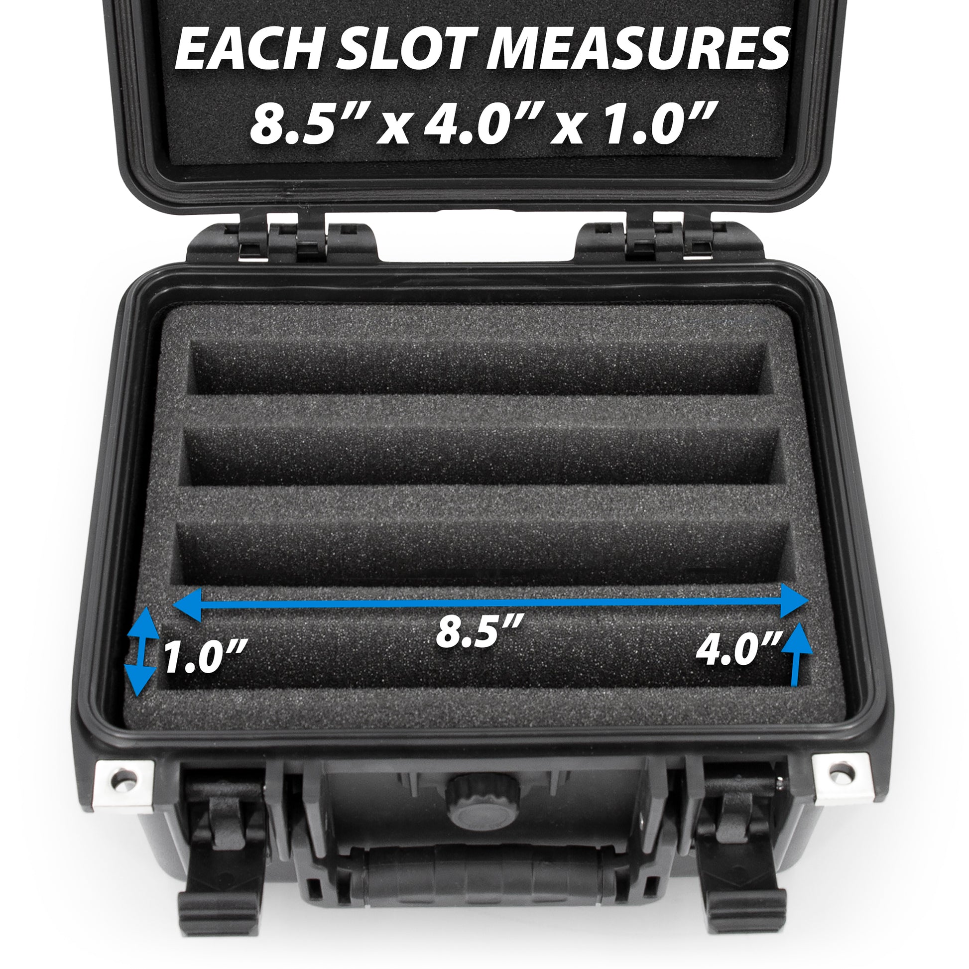 • Precision-Cut Four-Slot Organization System: Four impact-absorbing slots (8.0" x 4.0" x 1.0" each) with built-in dividers securely store up to 60 graded banknotes total, with vertical storage allowing easy reading, sorting, and access to your currency collection.
