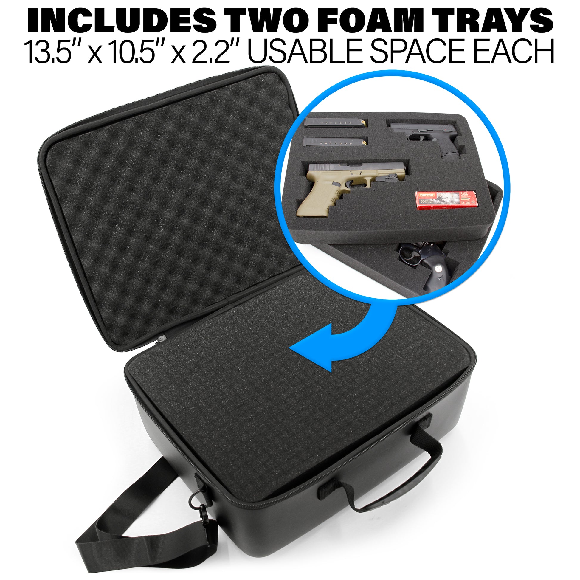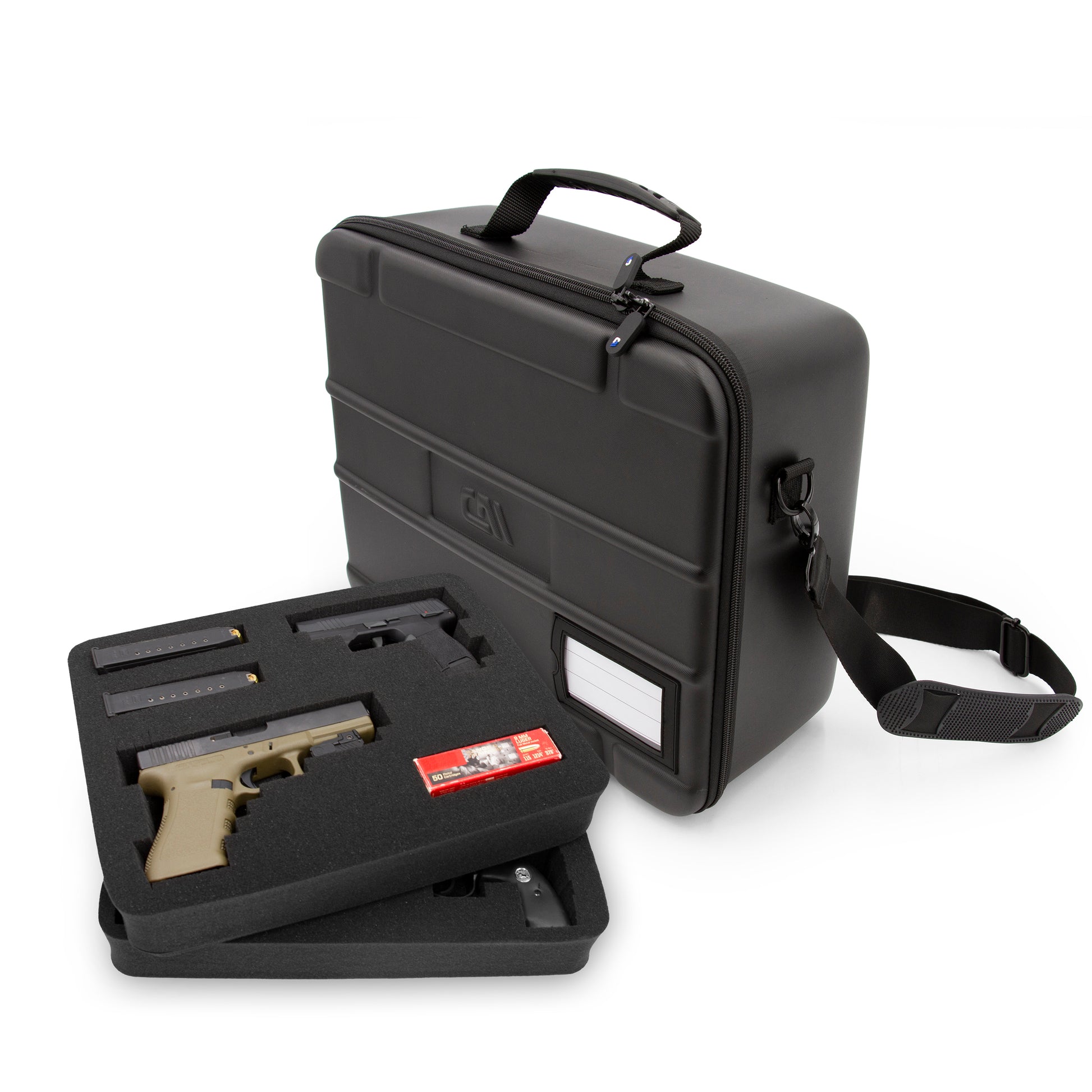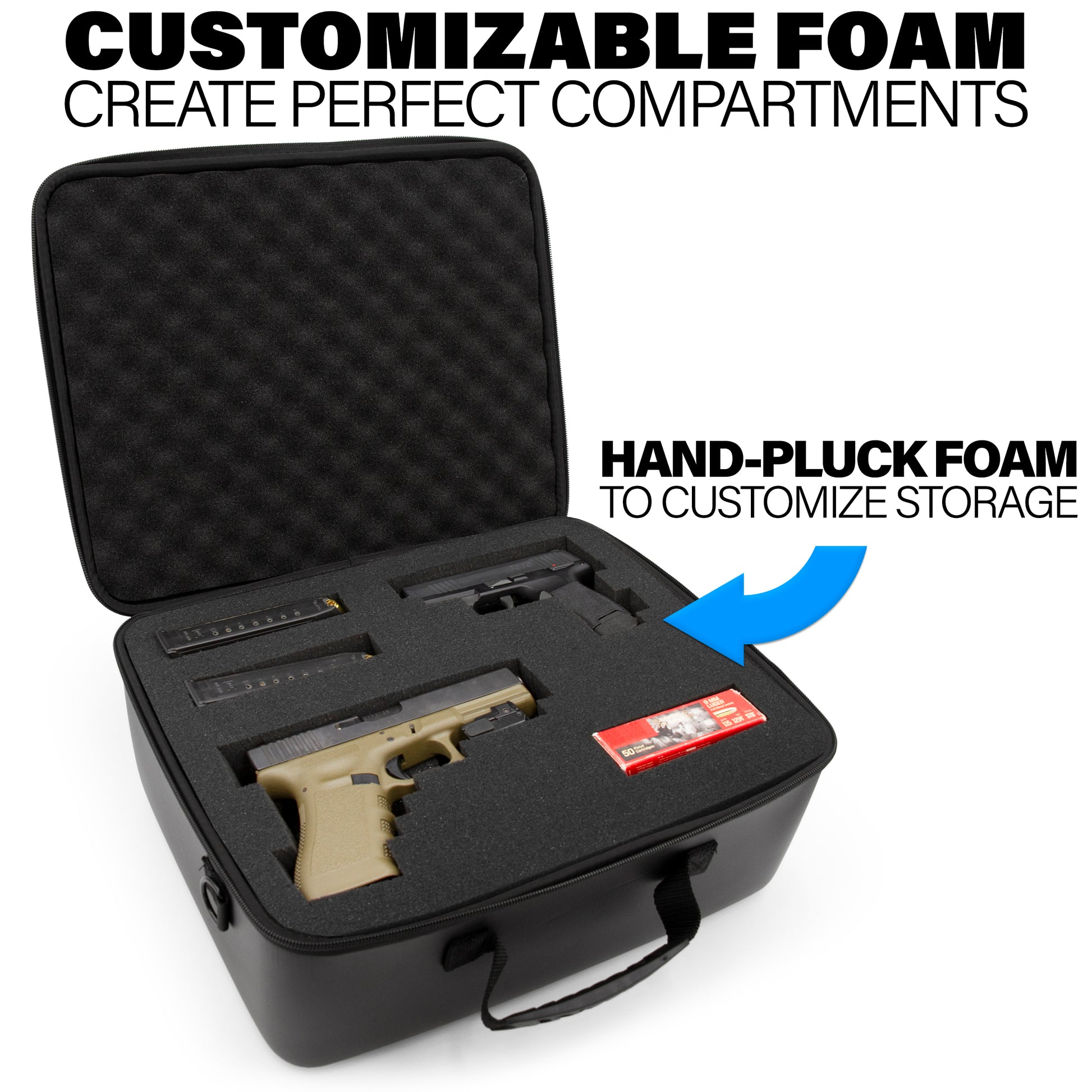 • Holds Up To 4 Pistols: CASEMATIX Range Bags for Handguns and Ammo are the perfect way to travel with up to four handguns, or several handguns and accessories. They feature customizable interior foam and hard shell outer construction designed specifically for firearm protection and organization during transport.