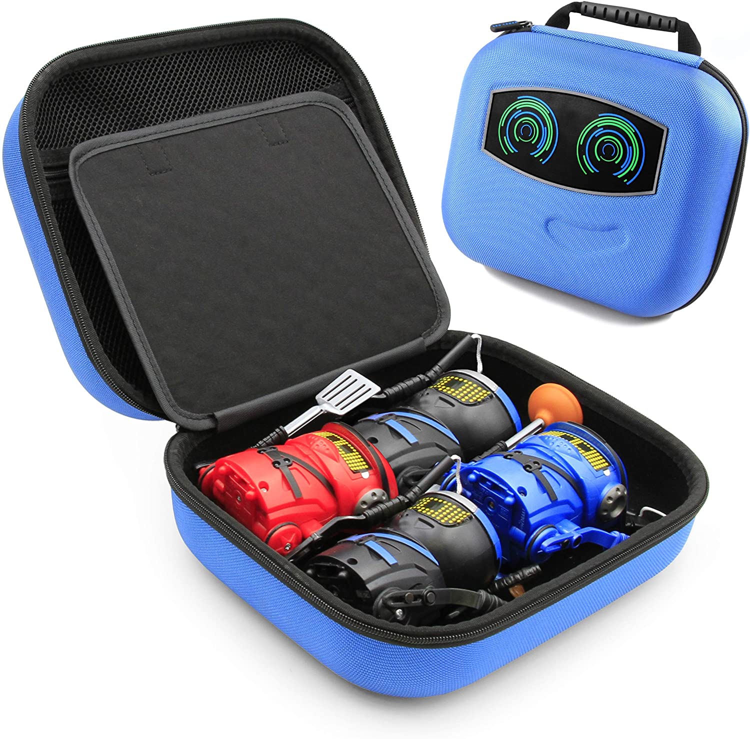 • 4 Ninja Bots Battle Robot Protection: Ultra-durable case with blue color and robot character face design, gel padded divider, and zippered accessory pouch protecting your fighting robot toys and battle robots accessories with hard shell construction for maximum protection.