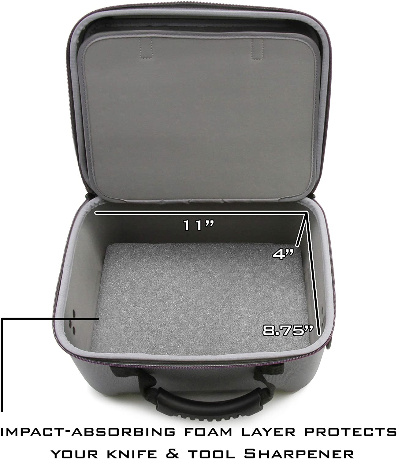 • Impact-Absorbing Dense Foam System: Bottom layer of dense protective foam cradles your workforce knife sharpener with premium foam layer keeping your knife and tool sharpener protected from impacts and dings during travel and use.
