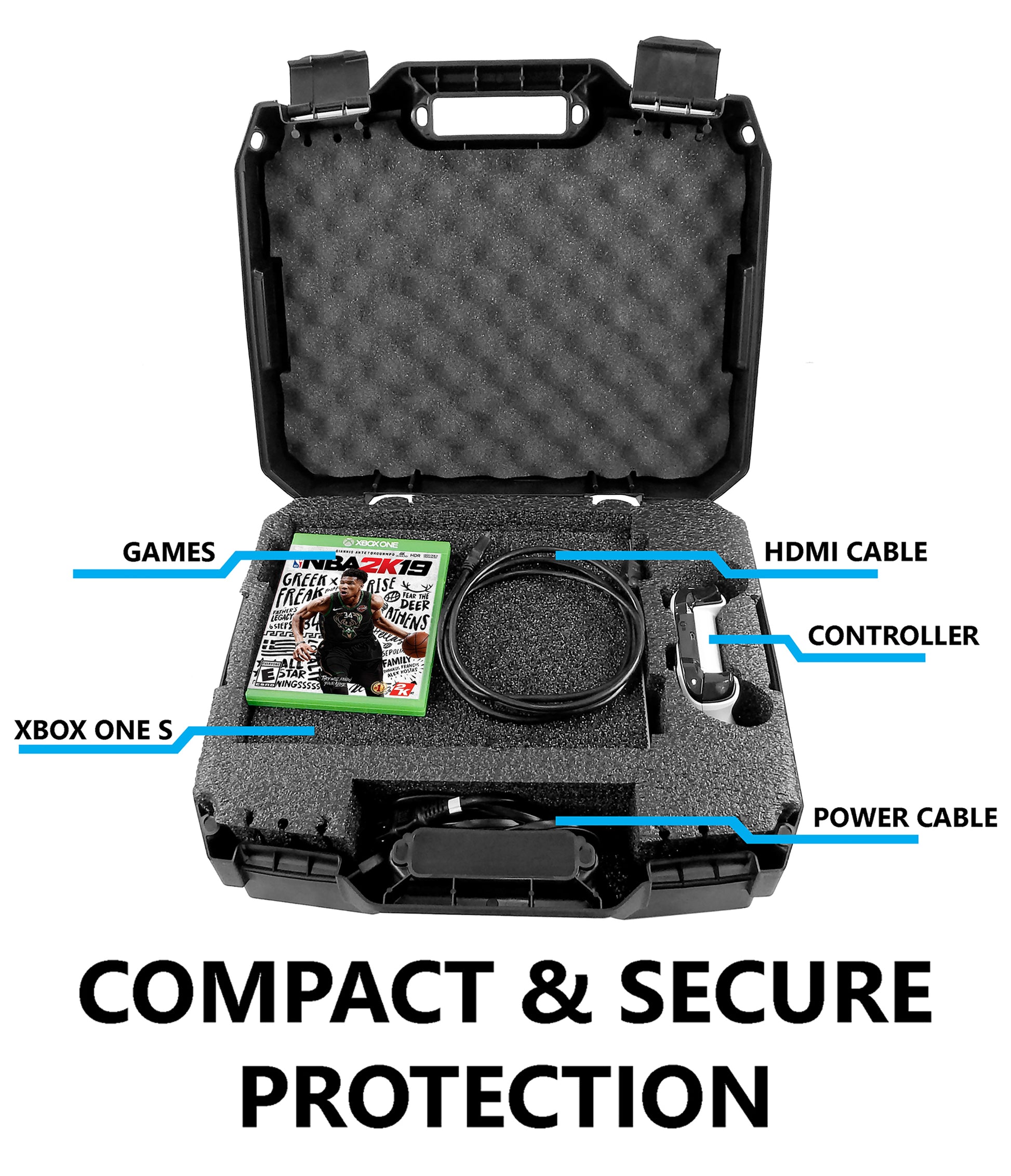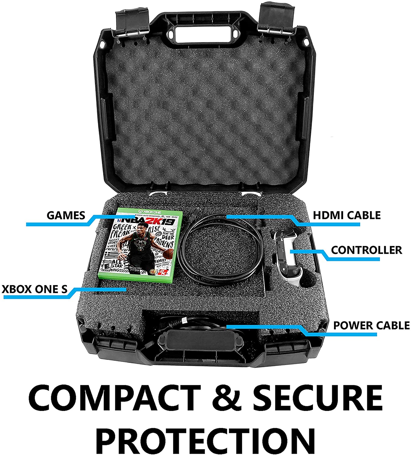 • Designed Specifically for Xbox One S: Premium Xbox One S case offering custom-fit solution with precision-cut foam compartments to securely store your console, controller, power adapter, and accessories with compatibility only for Xbox One S (not X or Original) providing optimized protection for specific Xbox One S dimensions and configuration.