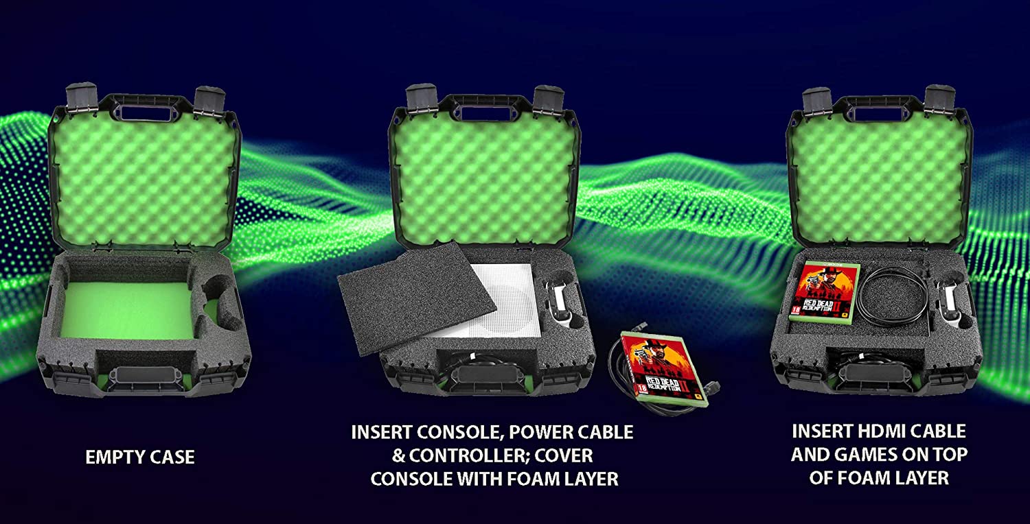 • Protective Foam Storage Interior: Interior featuring dense, impact-absorbing foam and egg-crate padding in the lid providing 360-degree gaming console protection and preventing shifting or damage during transport ensuring comprehensive cushioning for valuable Xbox One S gaming equipment and accessories.