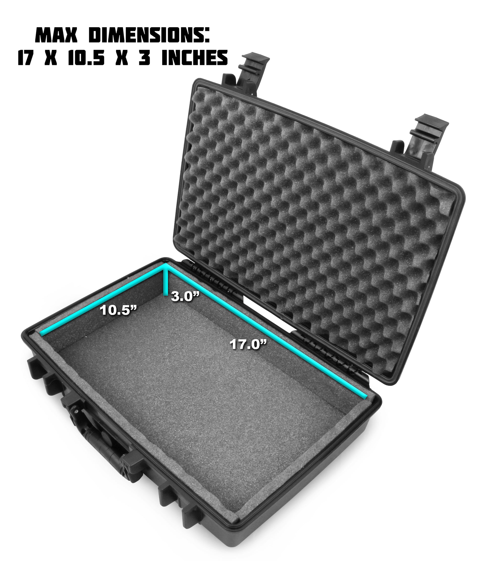 - Compact Exterior: The CASEMATIX audio recording case features a thick plastic handle, double closing latches and dual padlock rings for added theft deterrent of your podcast mixer and accessories - external dimensions measure 19" x 14.0" x 5.0".
