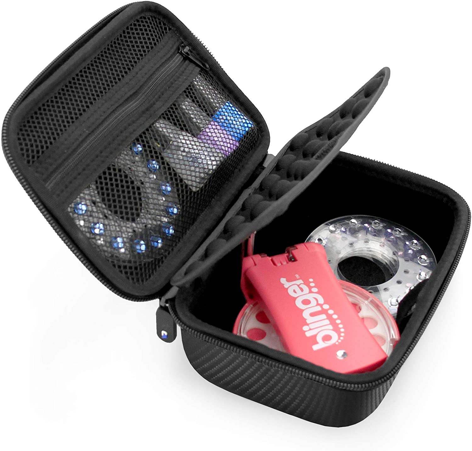 • Blinger Case and Organizer: Hard shell case holds and helps organize your bedazzler kit with rhinestones, including your Blinger Nail Radiance collection tool, adhesive gems, blingers for your hair, beads for hair and more with complete craft organization.