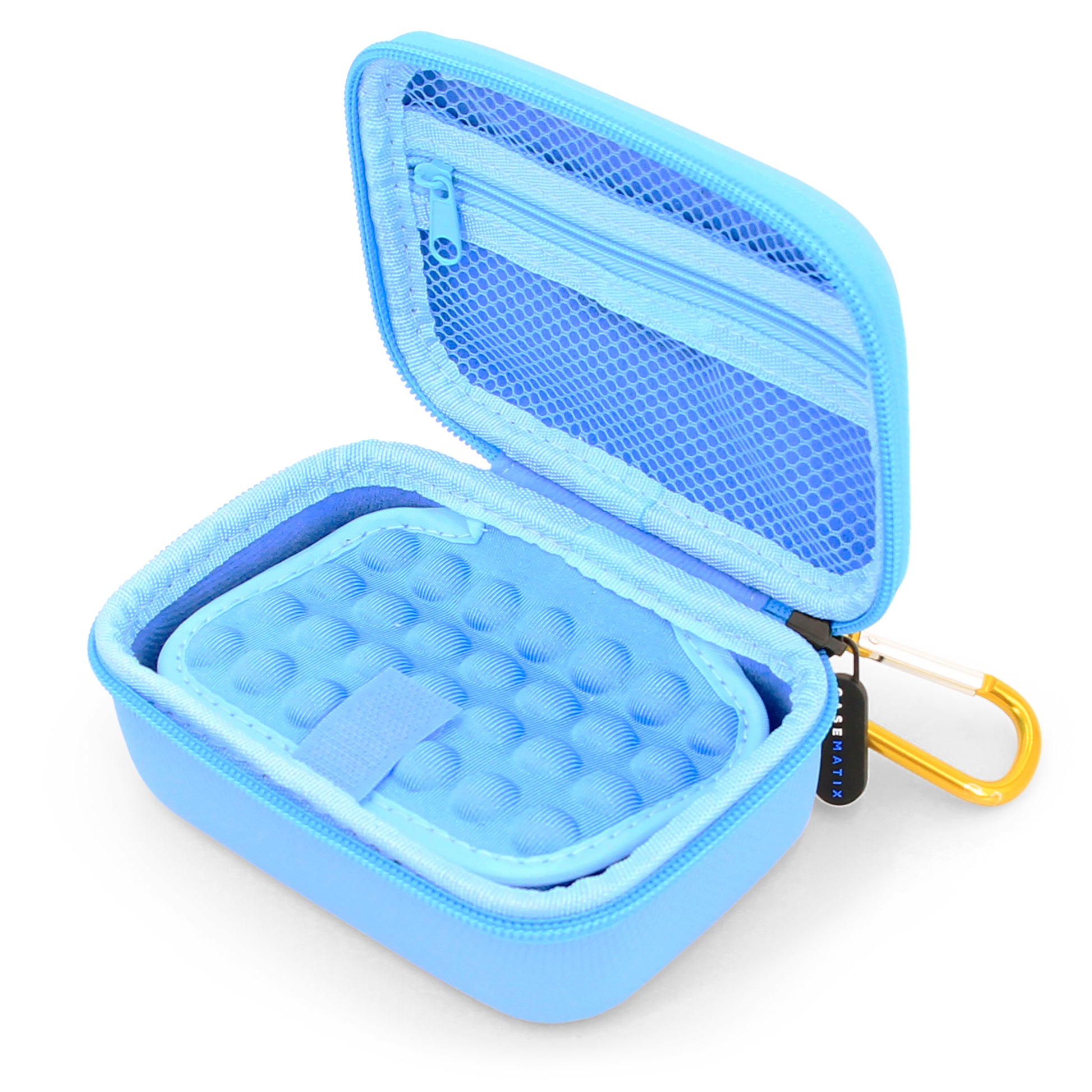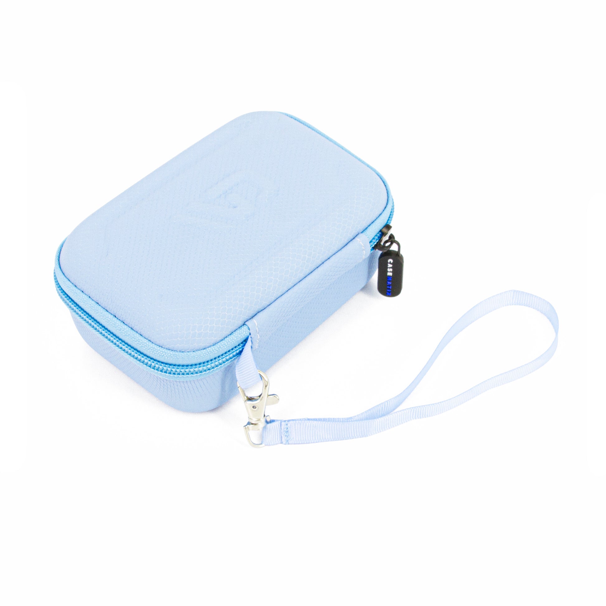 • Compact Travel Design: External dimensions of 5.5" x 3.75" x 2.5" with internal dimensions measuring 4.75" x 3" x 1.5", featuring comfortable carrying wrist strap and fun light blue stylish color for convenient transportation and appealing aesthetic.