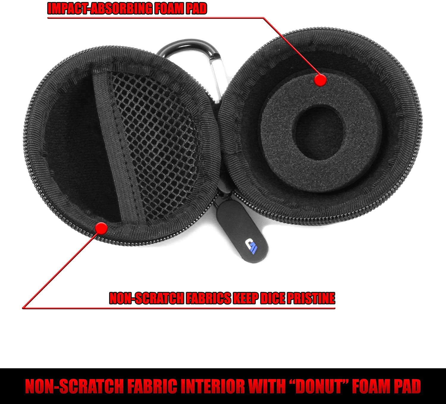 • Superior Interior Protection: Our case's non-scratch interior and impact-absorbing foam "donut" pad will keep your premium dice fully protected, whether the case is attached to a belt loop, a backpack, or stored in a larger tabletop bag.