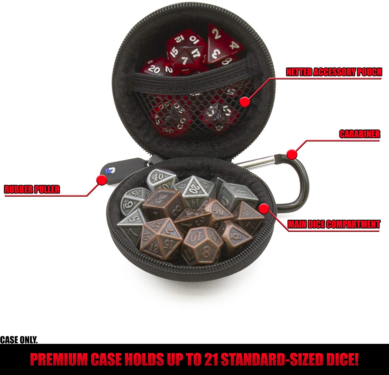 • Premium Protection Design: This protective dice carrier will help store up to 21 standard-sized tabletop dice! The densely-woven dice vault exterior offers defense from drops and impacts that might otherwise damage your dice with professional-grade construction.