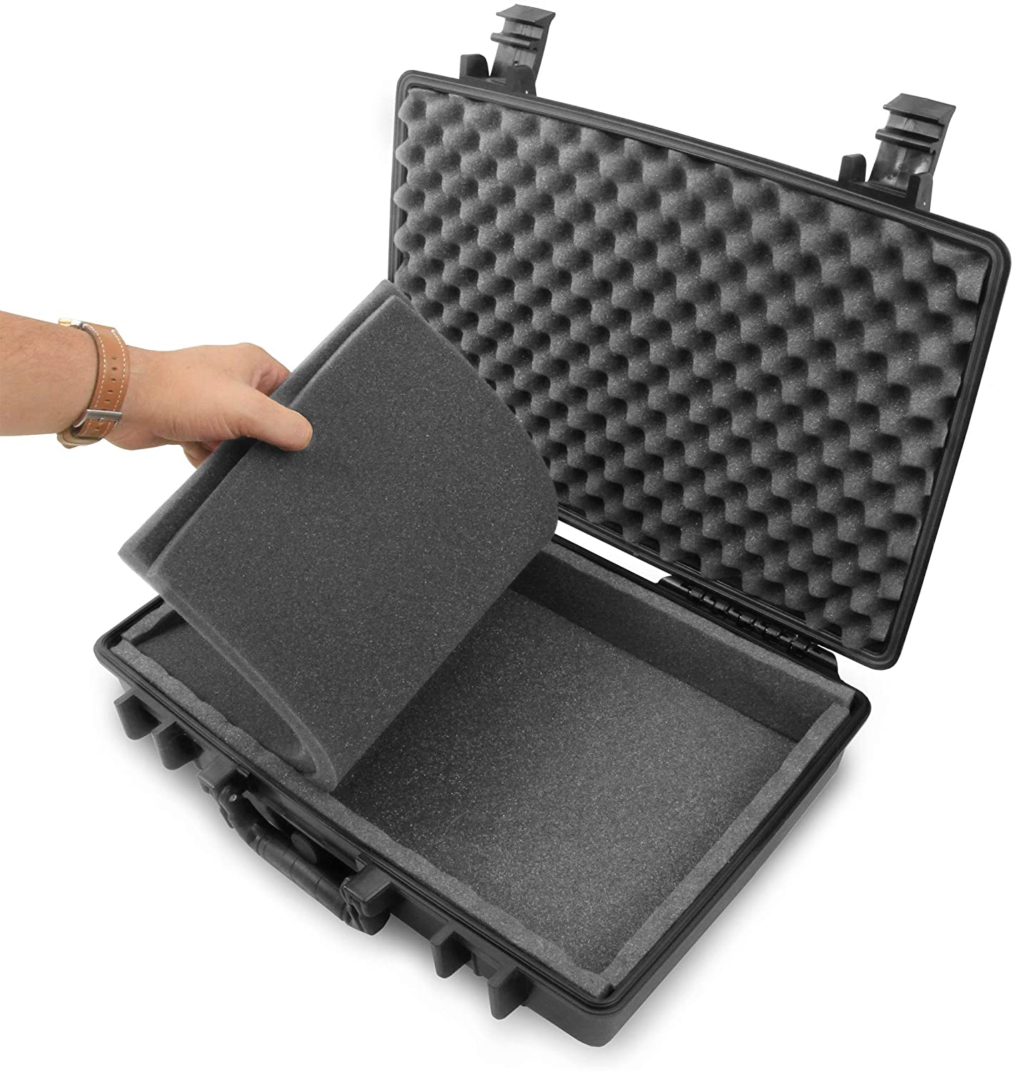 • Heavy-Duty Waterproof System: Heavy-Duty Latches and Waterproof & Airtight Construction with strong latches, reinforced hinges, and waterproof silicone border keeping the case held firmly shut with moisture and dust protection for your 15.6" laptop and accessories featuring waterproof O-ring liner with integrated pressure release valve.