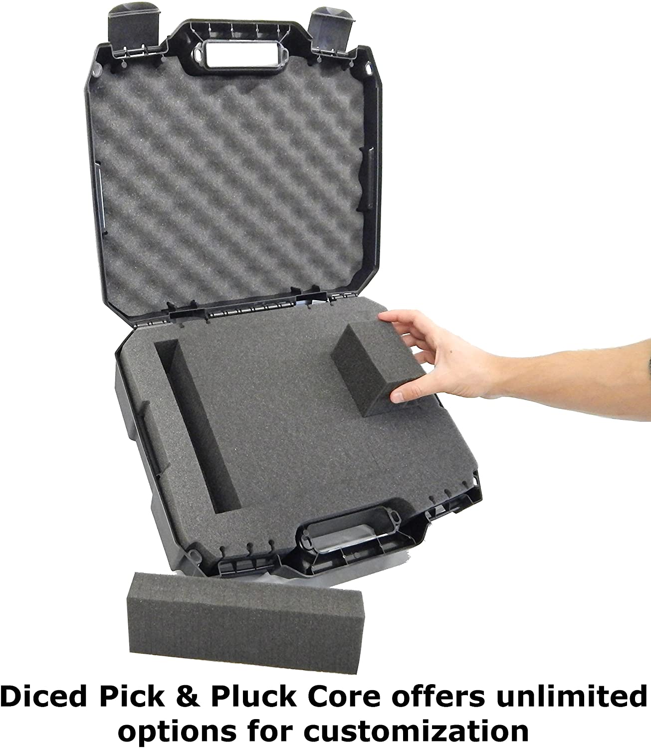 • Perfect for Travel Security: Built-in carry handle, two heavy duty latches and two padlock holes for security. Includes padded foam top, customizable pick and pluck middle foam layer and padded foam base to absorb impacts and prevent glass from breaking.