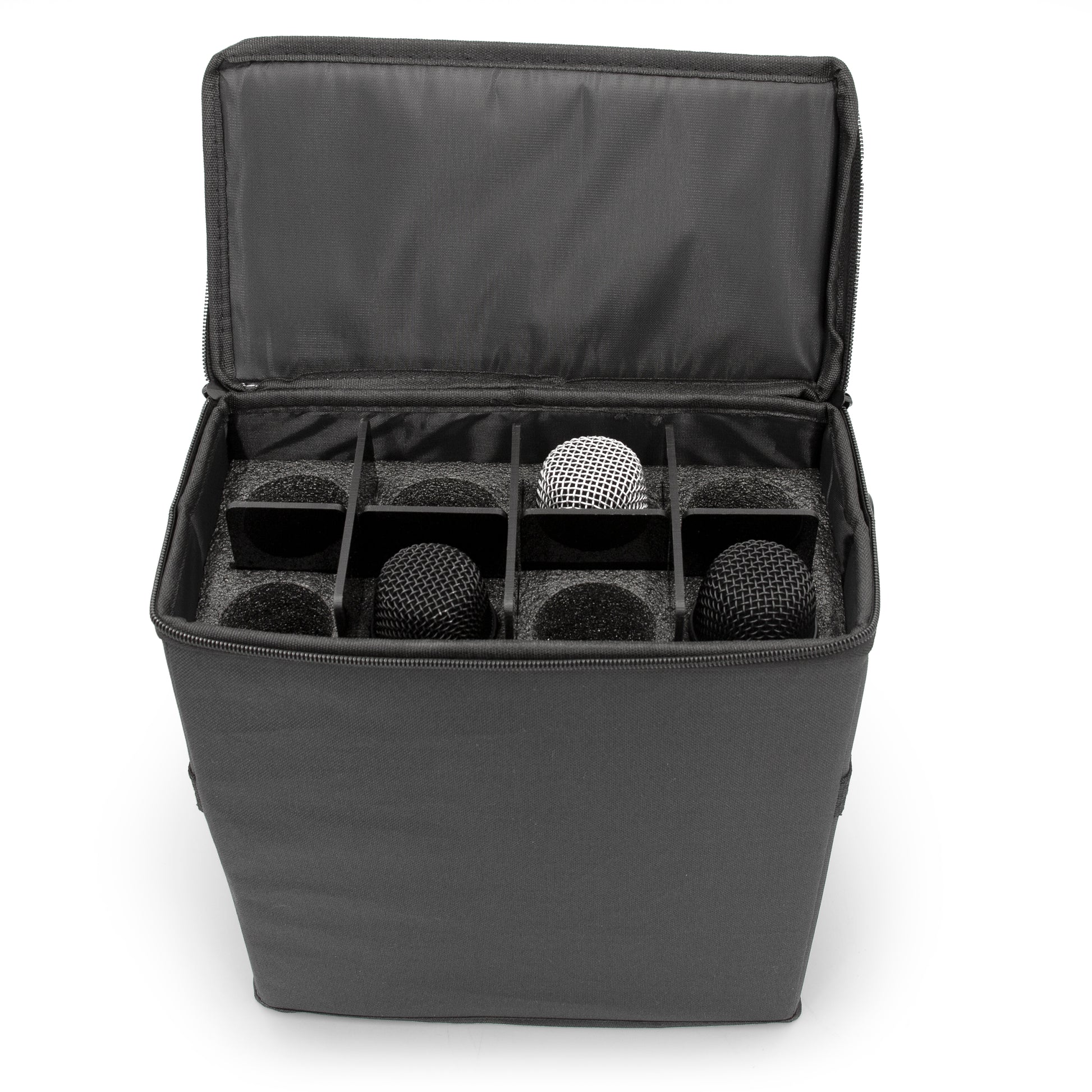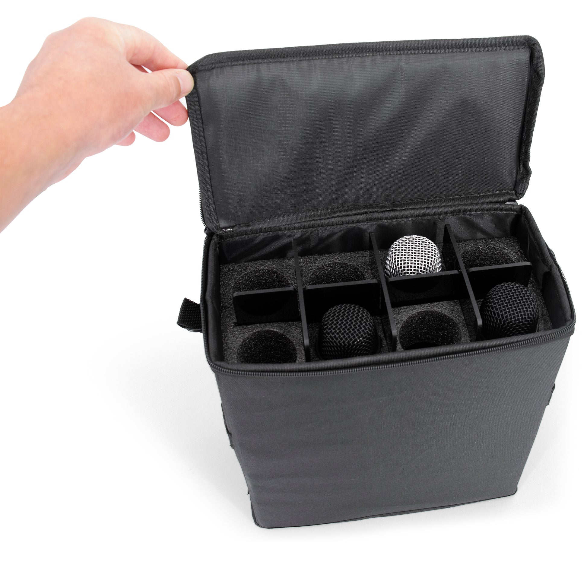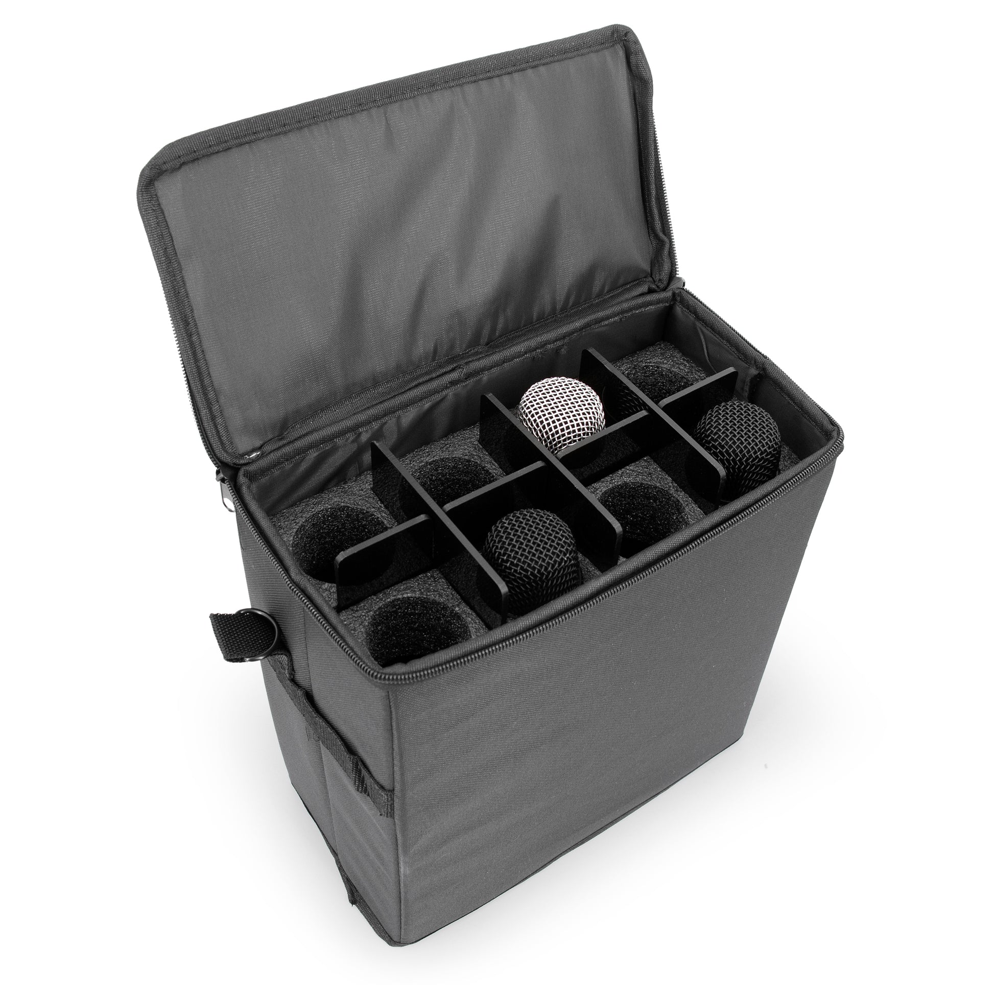 Ideal For Travel With Removable Shoulder Strap: Sleek design provides budget solution for storing or transporting up to eight portable microphones - interior main compartment has eight separate slots with foam insert holding mics upright