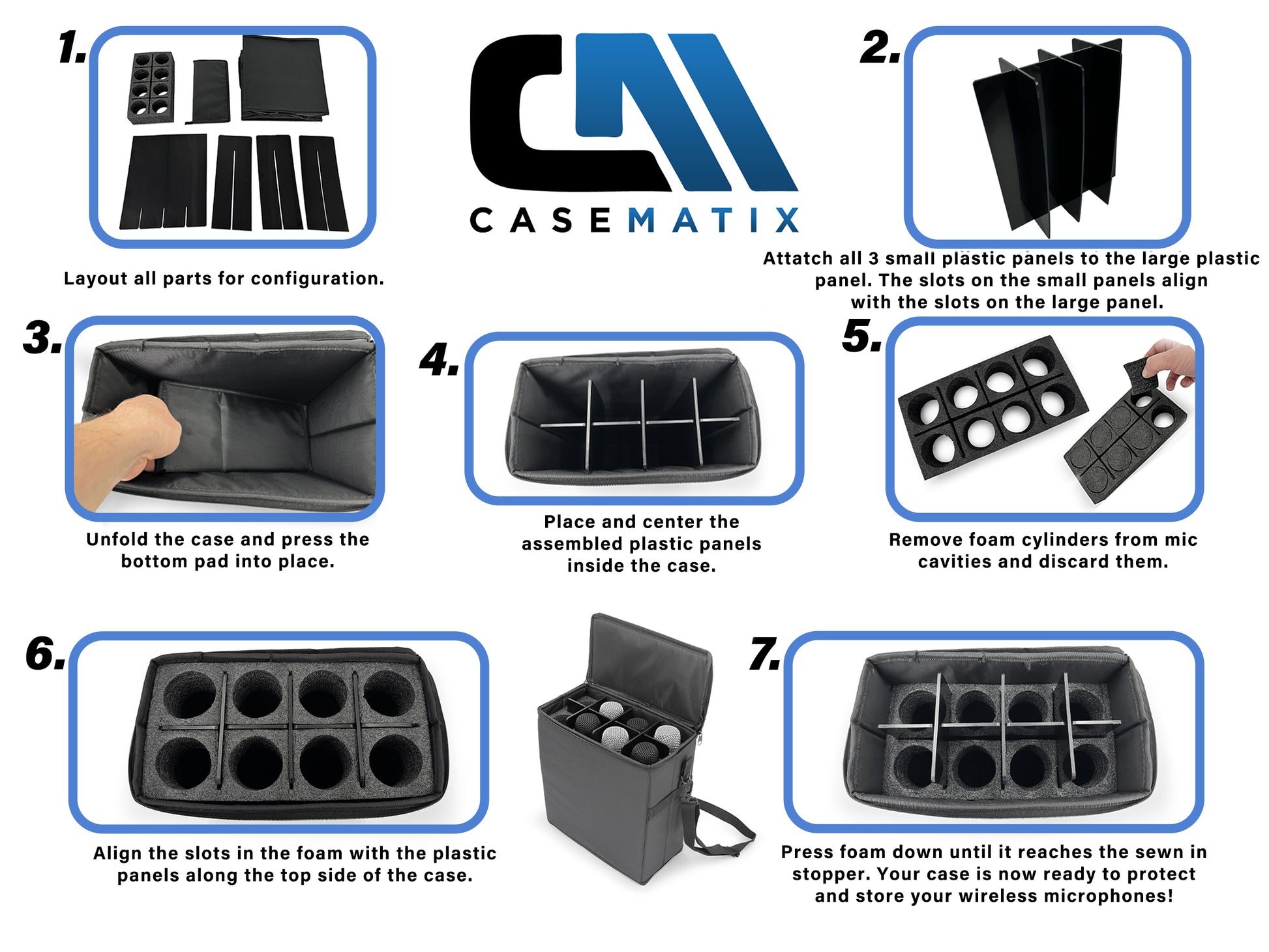 Lightweight Microphone Travel Case: Protective budget-friendly design prevents wireless microphone system mics from being damaged - includes 8 mic slot storage dividers keeping them organized, ships flat with fold lock assembly