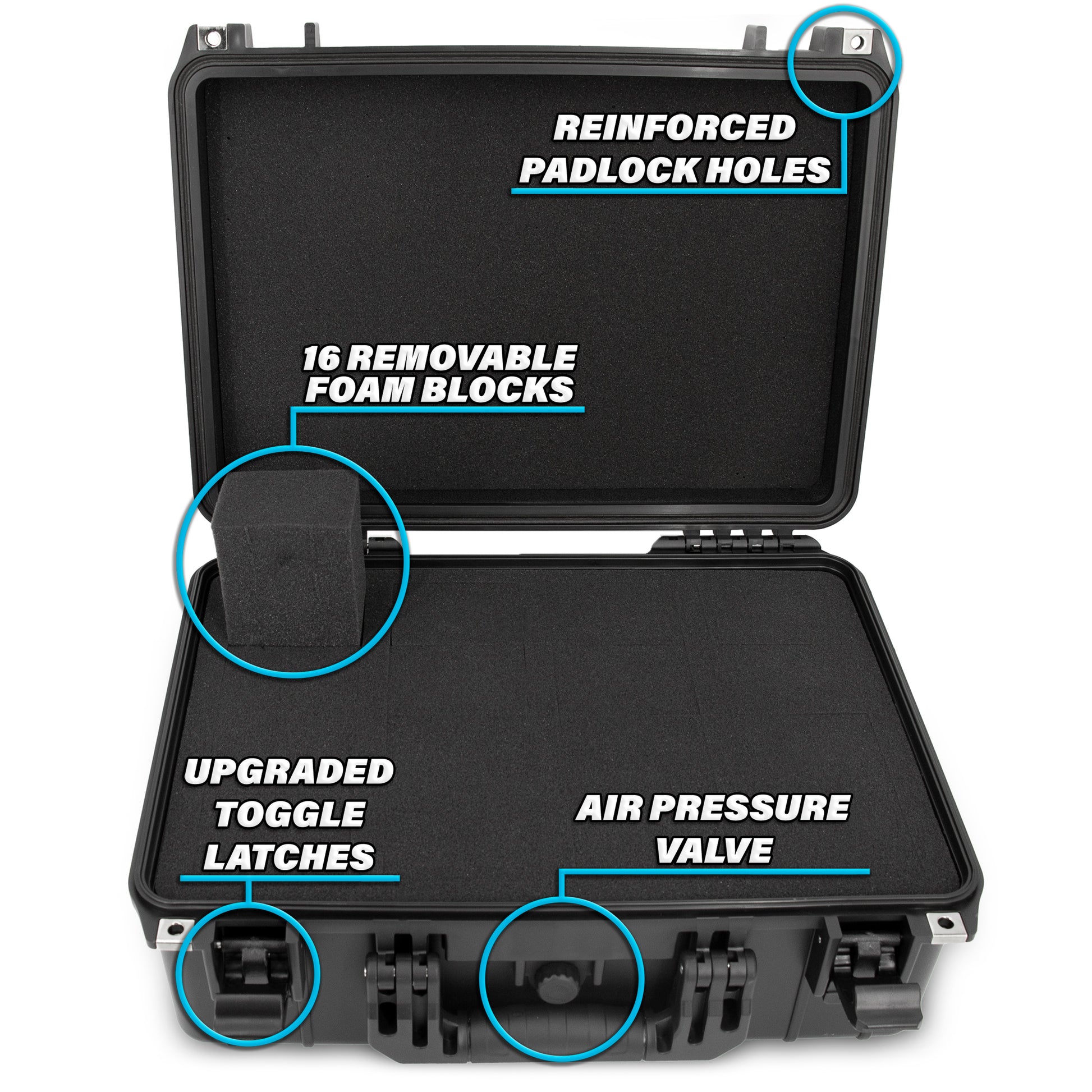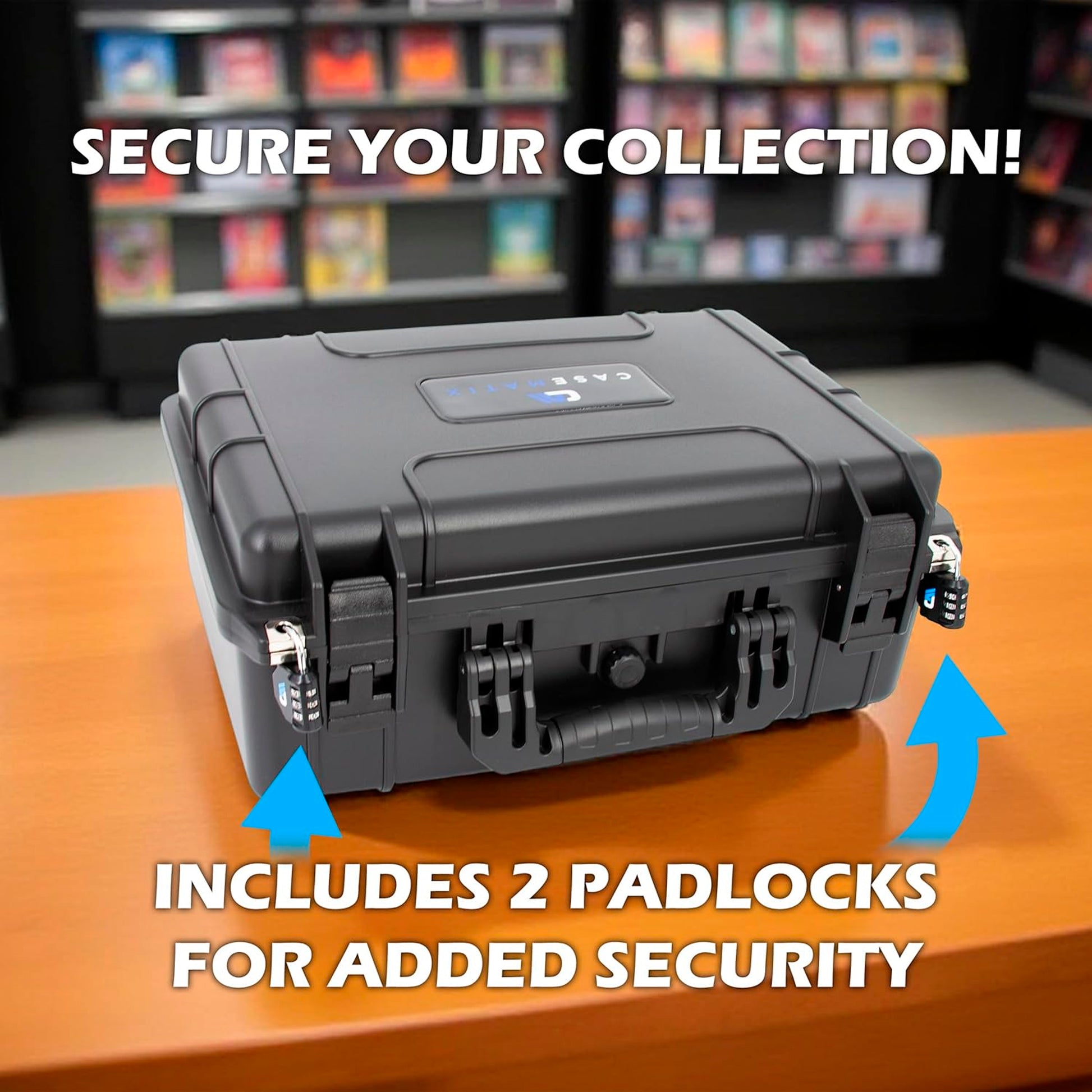 • Travel Handle and Two Locks: Designed with folding carry handle for portability - features two metal rings built directly into shell for securely attaching two included locks, ideal for trade shows or everyday storage